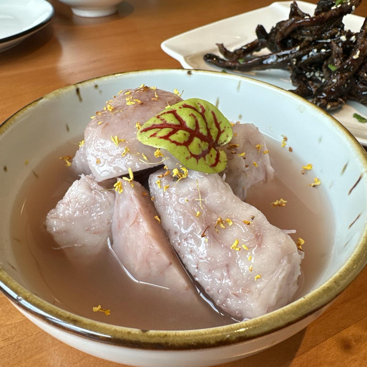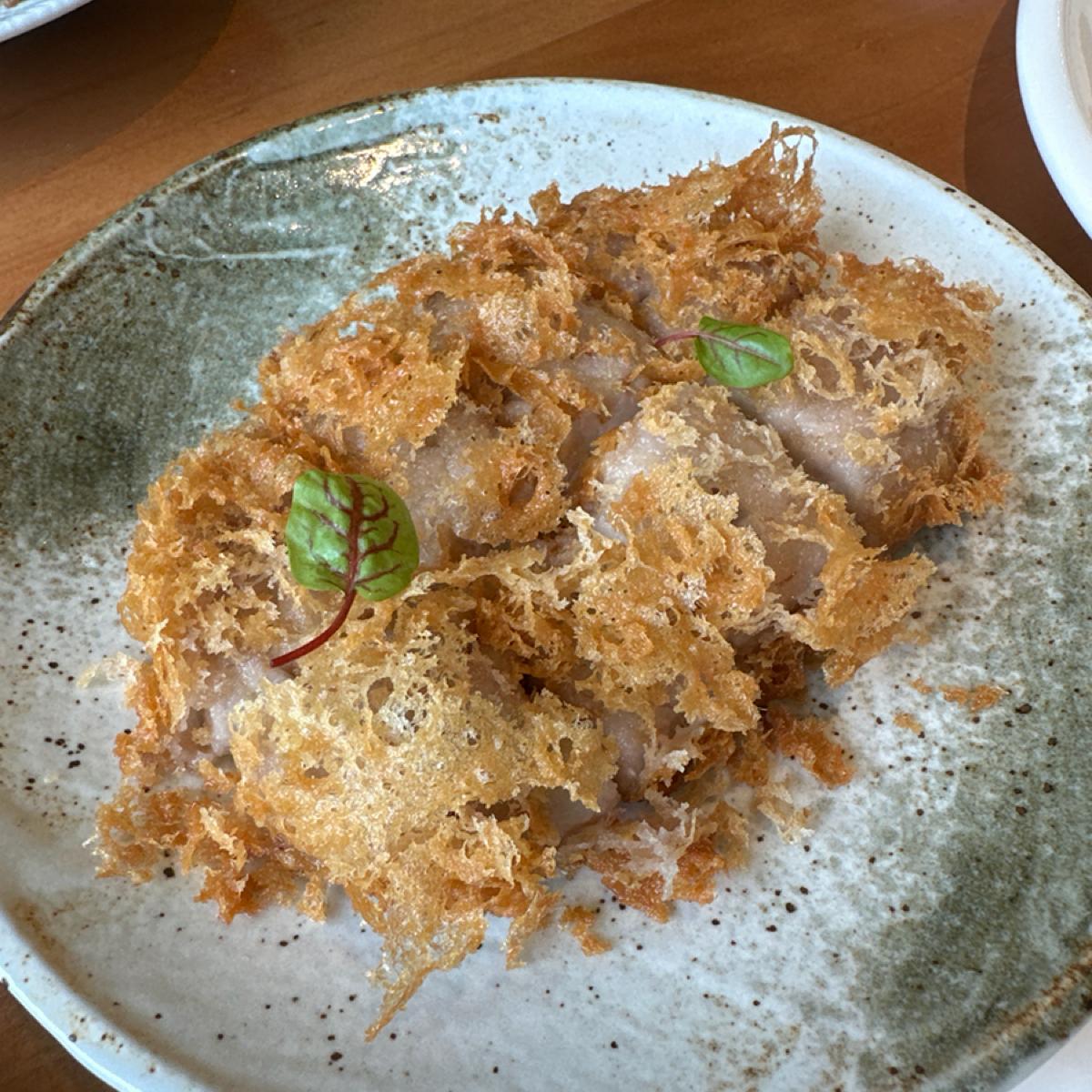 麵衣裹的不太好,筷子一碰就全掉光了,芋泥的部分非常軟綿濃郁,但太軟太綿了,要將芋泥鴨夾起來的時候,筷子會整個陷入芋泥裡不好夾起來。芋泥綿密是好吃的沒錯,但跟鴨的比例不是很平衡,芋泥過多,入口後會有點偏乾,越吃越噎。