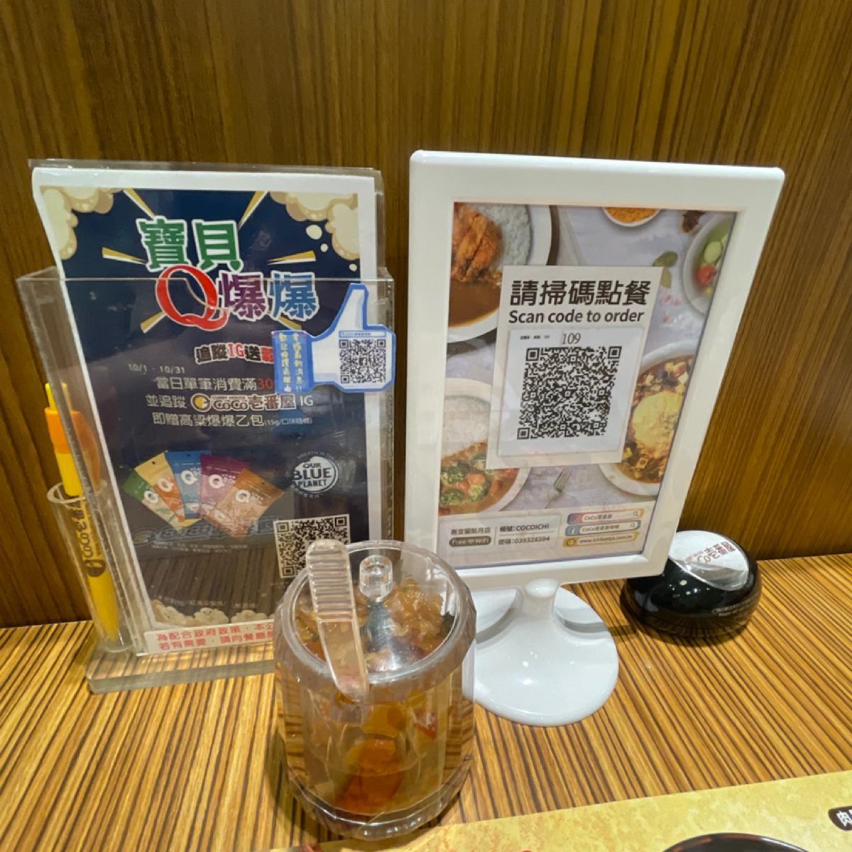 入座後掃QRcode點餐,有紙本菜單可以參考,點餐方式寫的蠻清楚的,先選主餐想要什麼咖哩,再選飯量(100g~600g之間可以自行選擇,份量越大金額越高,我覺得蠻不錯的,飯量小一點可以省一點錢又不浪費),選辣度後接著選配菜,最後再看要不要升級成套餐。