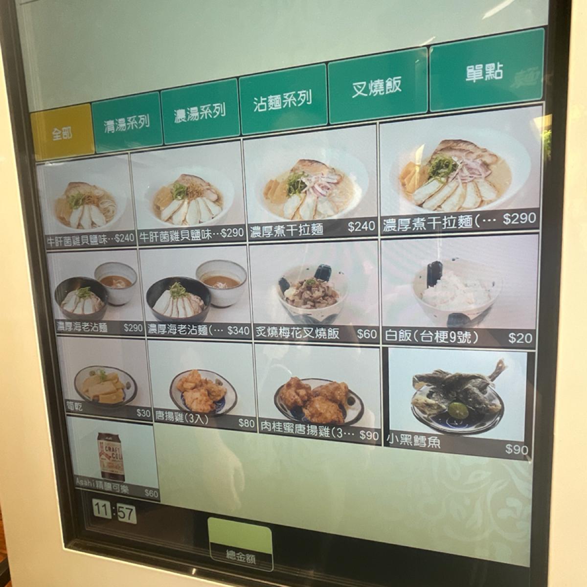 拉麵分成清湯、濃湯和沾麵,另外還有叉燒飯及唐揚雞可以點