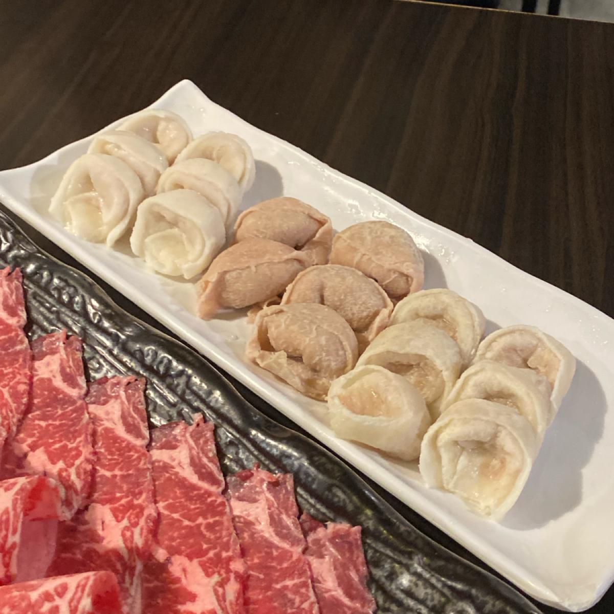 海鮮盤很新鮮,每種都很好吃。手工餃份量很多,絞類的皮煮起來偏Q蠻好吃的,豆皮、蛋餃、花椰菜、娃娃菜就是正常好吃。自製的沙茶醬薑味比較重,調味料還有薑絲搭肉跟海鮮都好吃。