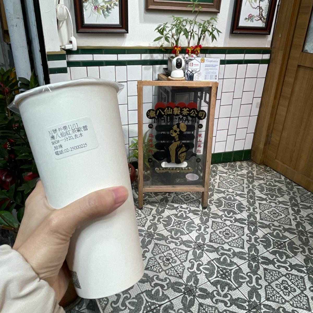 瀹八仙紅茶歐蕾 加珍珠 $60 茶味蠻濃蠻香的,且不會澀澀的 (看到店門口擺著百年老店林華泰茶行的袋子,跟店員確認後確實是用林華泰茶行的茶葉) 一分糖去冰,喝起來像無糖,奶味不太明顯,且珍珠吃起來也是無糖的,口感普普 綜合來說,因為我喜歡奶味重一點的奶茶,感覺他們的紅茶歐蕾要點至少三分糖或半糖,才會比較好喝,奶味也比較會被甜味提升出來,對我來說,是一款不太適合無糖的奶茶