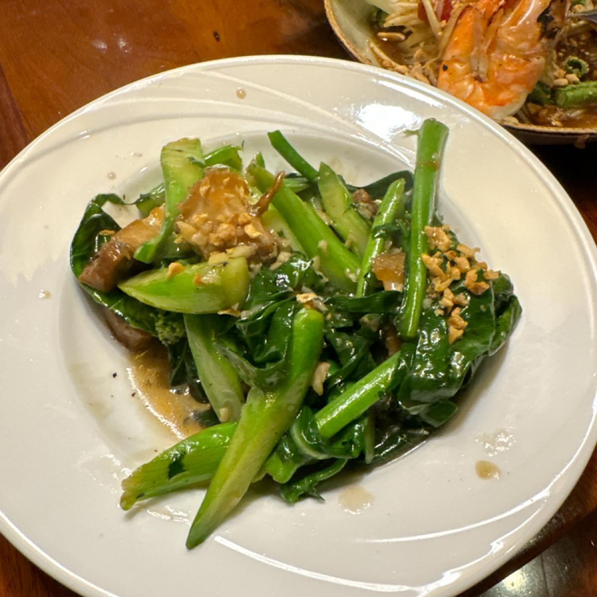 -脆皮芥藍-320-調味是淡淡的醬油膏感,芥蘭菜炒的有脆,旁邊是搭配條狀的三層肉,中規中矩