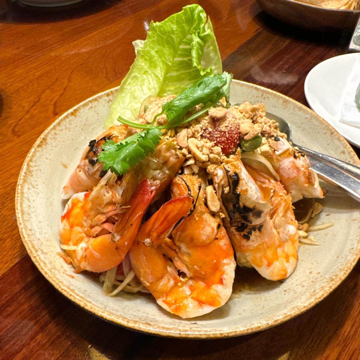 -焰燒蝦木瓜沙拉$680-蝦子大隻新鮮,帶有一點酸味,青木瓜絲的部分不是特別脆口,中規中矩