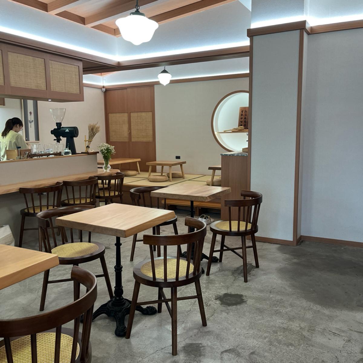 是一家沒有仔細看的話會找不到招牌的店家。裝潢偏日式簡約風格,有一部份的座位是榻榻米,杯盤看起來也有經過特別設計,很有趣。