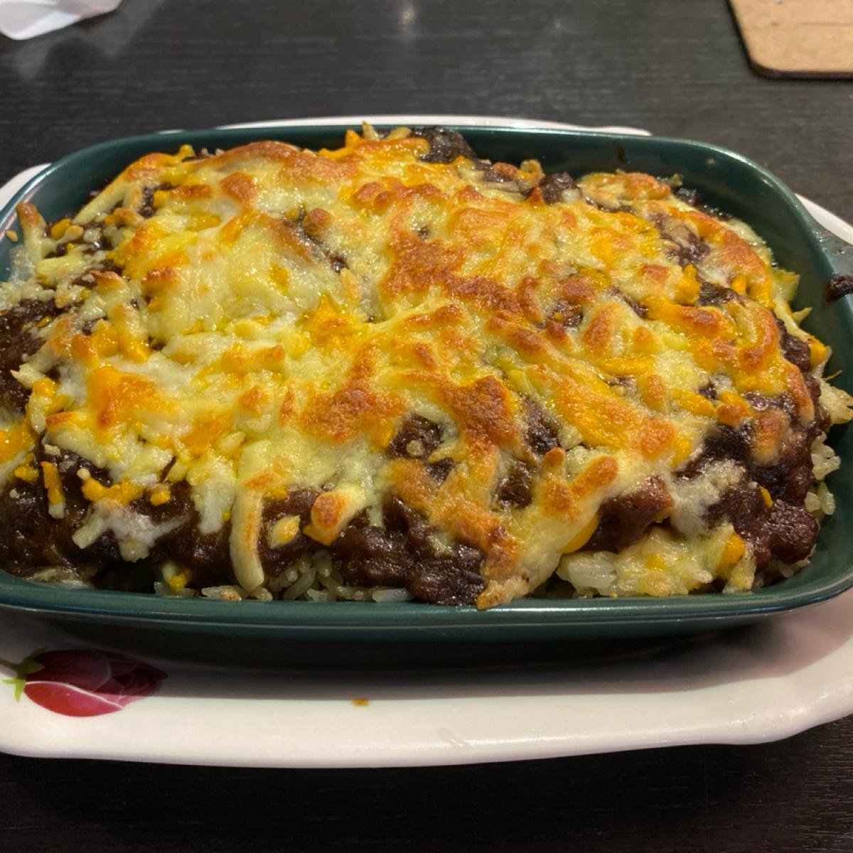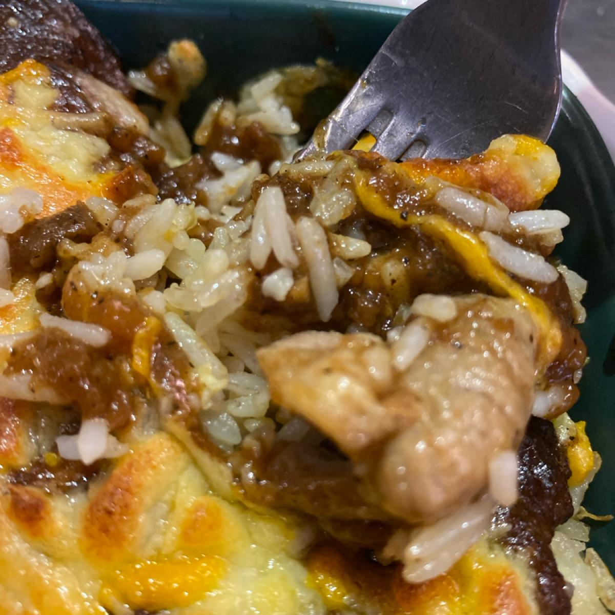 豬排飯,我是選擇黑胡椒口味的,一上桌的時候我就在想,這個是什麼東東啊,黑黑的,我本來以為是紫米,但是仔細看又不太像,挖下去謎底就揭曉了,牛排館的黑胡椒醬,第一口下去,整個黑胡椒的味道就衝上來了,我以為我在吃牛排🥩,之後吃到的是起司,然後我就開始翻…找我的豬排,原來他是用豬排片,雖然不是整塊的豬排,他的豬肉處理的很好,沒有肉味,滑嫩,不會輸給外面牛排館的排餐。