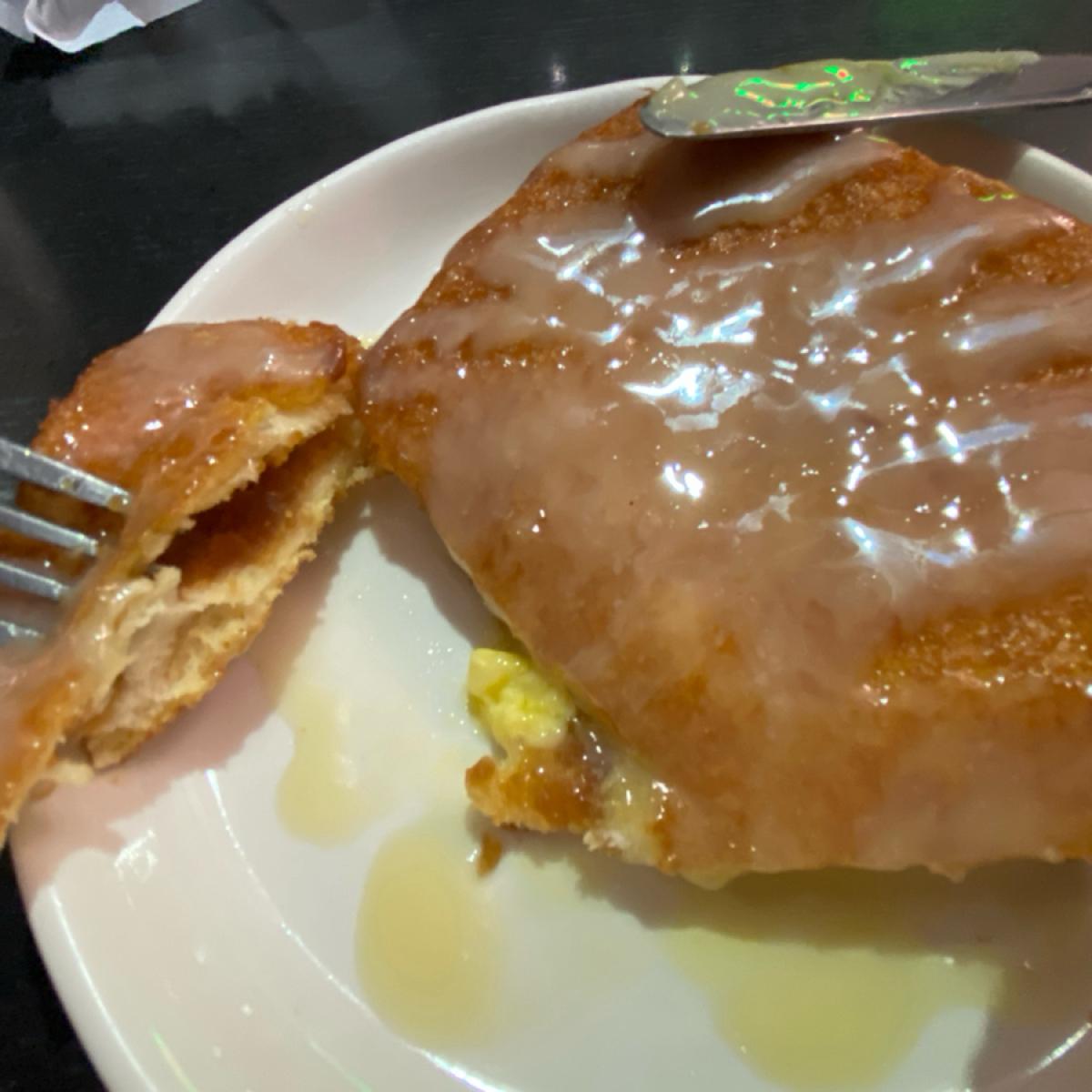 西多士,這個應該是今天的重點,聽說他們家的西多士很好吃,是必吃的產品,外觀看起來就很療癒,炸過的麵包+花生醬+滿滿的煉乳,還有一塊奶油,真的要胖死誰啊,一口下去,混合多層次的口感,真的不是蓋的。