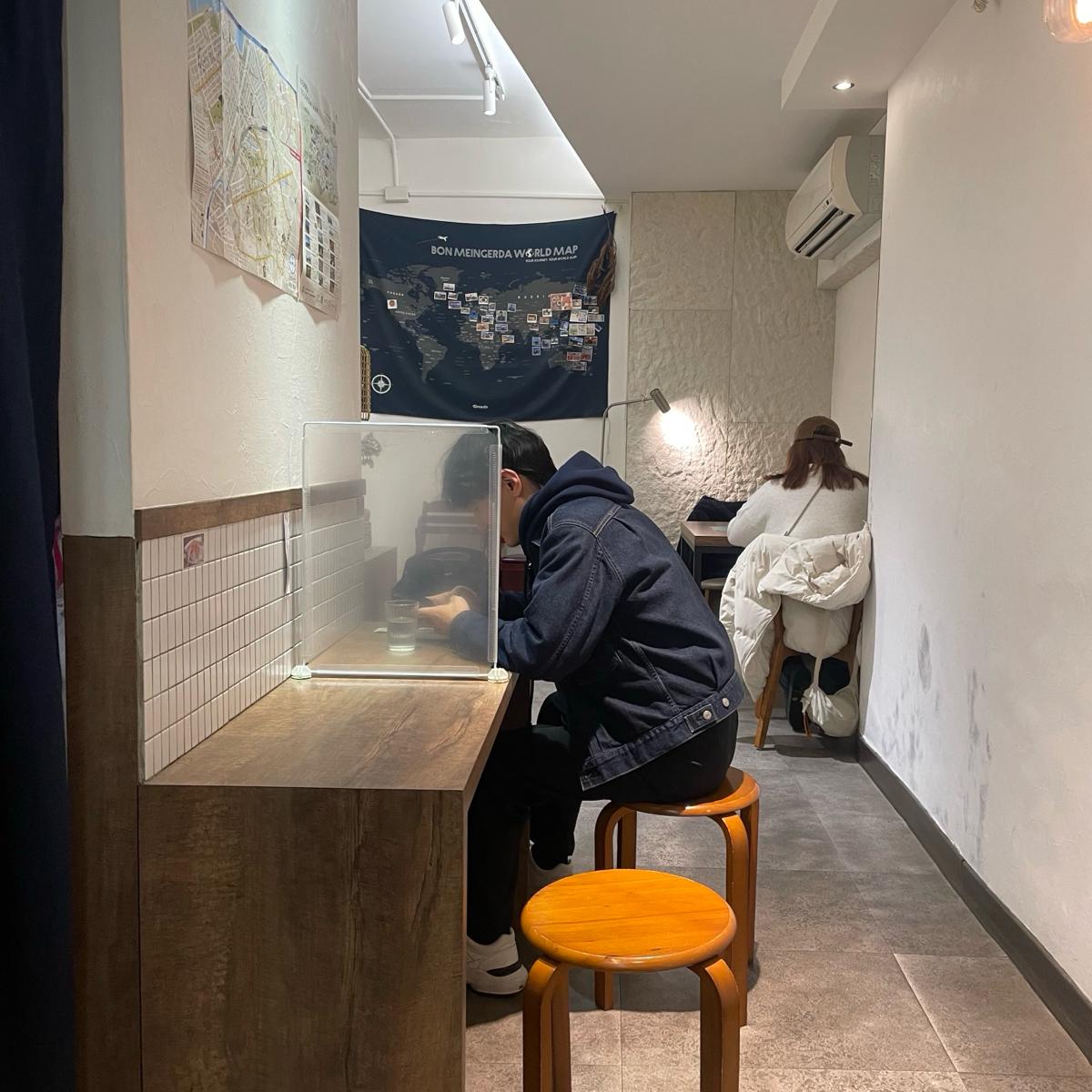 店內只有14個座位,據說要在開店前先來排隊才有機會在開店第一批吃到,我們星期日下午4:40左右到現場發現還沒人排隊,就到公園晃晃,大概4:55左右就開始有人排隊了,大概5:10左右第一批就額滿,接下來到的客人就要登記候位了,可能需要6點多甚至7點才能進場