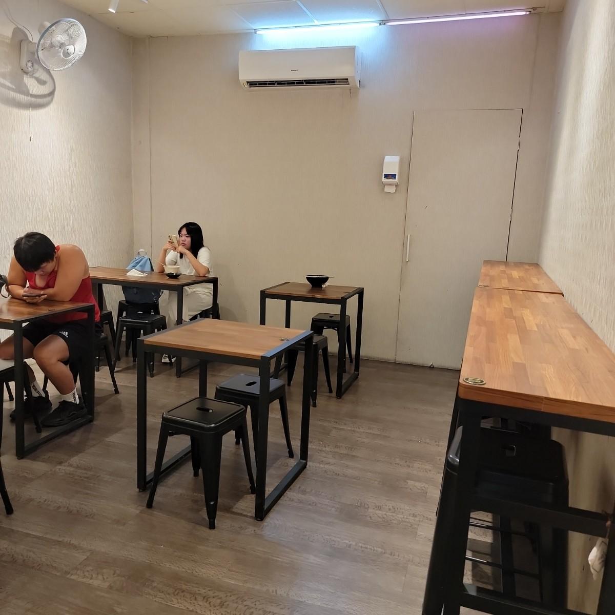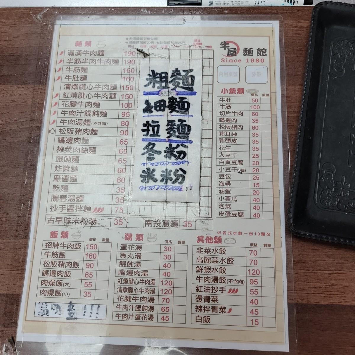 這邊是餐飲一條街,所以門口停車不易。店面招牌用紅黑設計,並且大大的寫著花腱牛肉麵$100作為廣告。店內冷氣開放,外面是料理區,一旁有椅子可稍作休息;店員看起來好像只有一個人,所以用餐時段可能要稍作等候。內用空間很大,屬於狹長型的空間,往裡面走還有第二個內用空間。