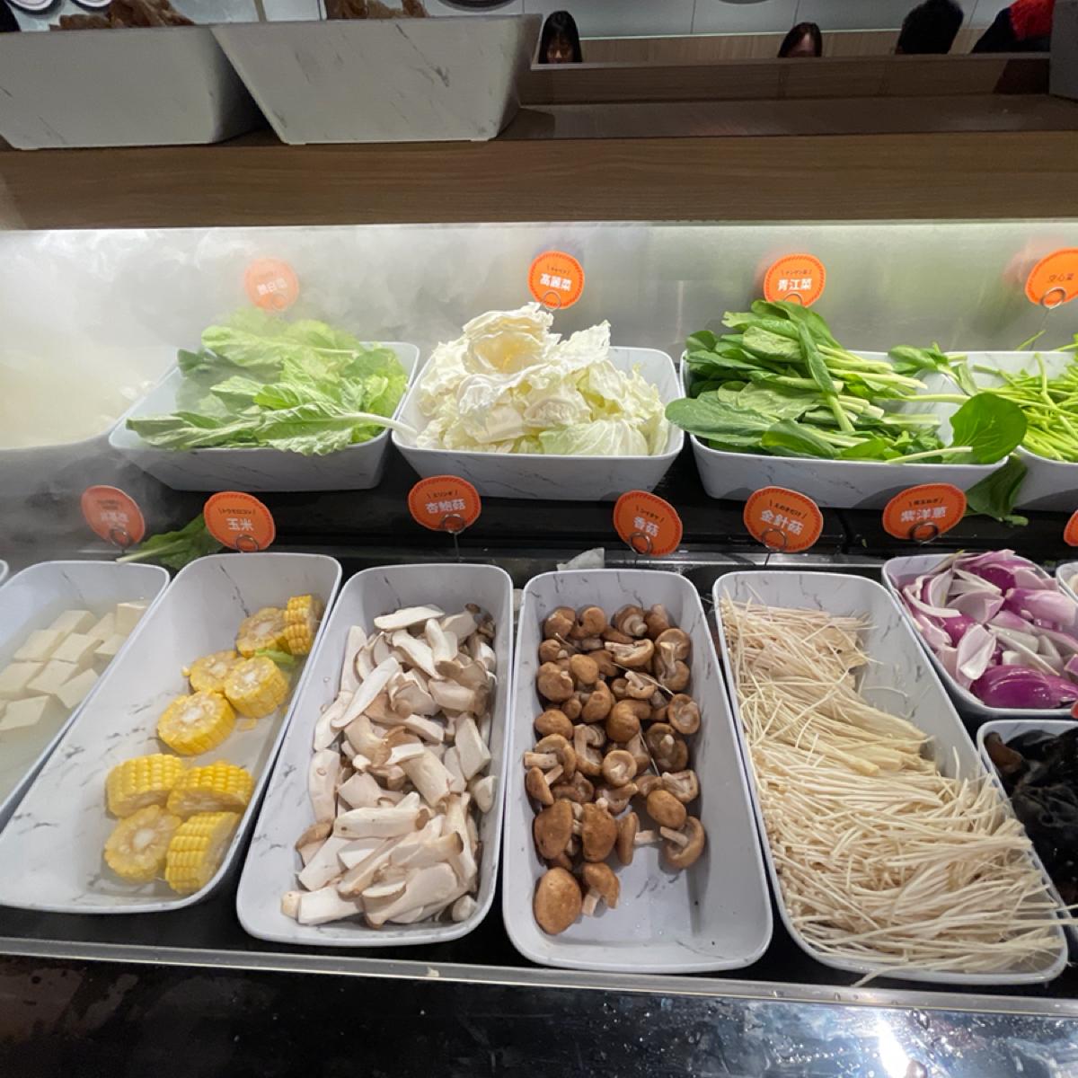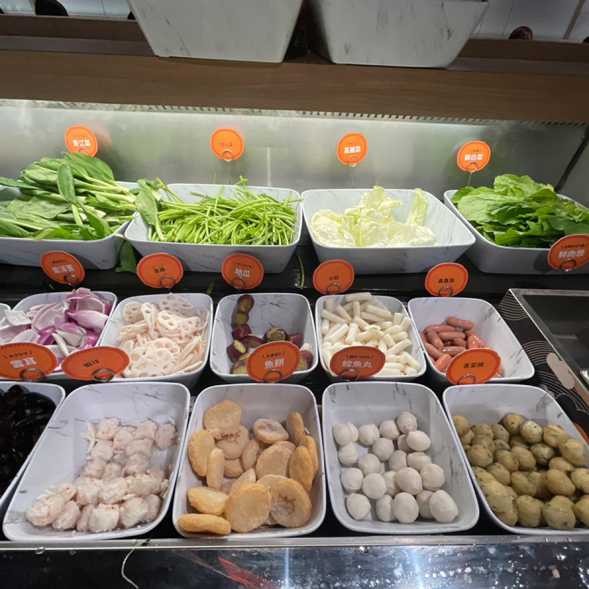先選湯底,友人選了旨味牛骨湯,喝起來就是還ok,我選了激辛麻辣湯,有他們可愛的招牌熊熊可以融化在湯底裡,還提供一些辣料可以自行調整辣度,平常火鍋大概都吃小辣左右,只加了一半的辣料覺得剛好,再多可能就太辣了。