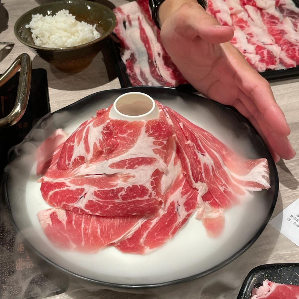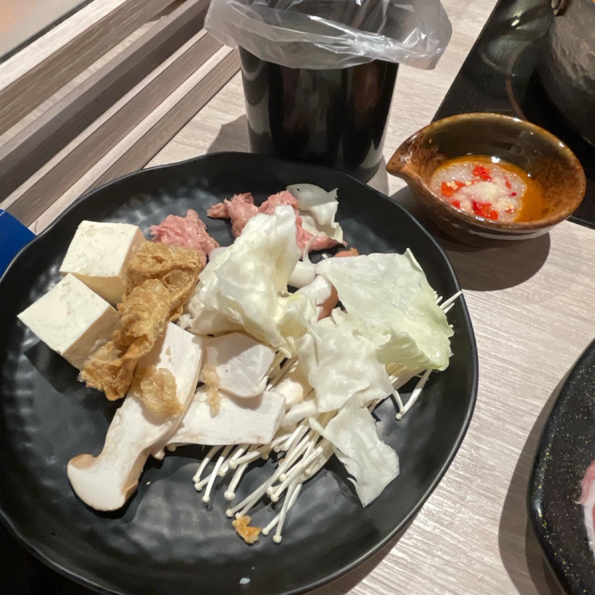 肉的部分選了雪花牛跟梅花豬,雖然隔壁桌的肉瀑布感覺很澎湃,但兩個人真的吃不完,當月壽星還送了一個肉盤,份量對我來說已足夠。