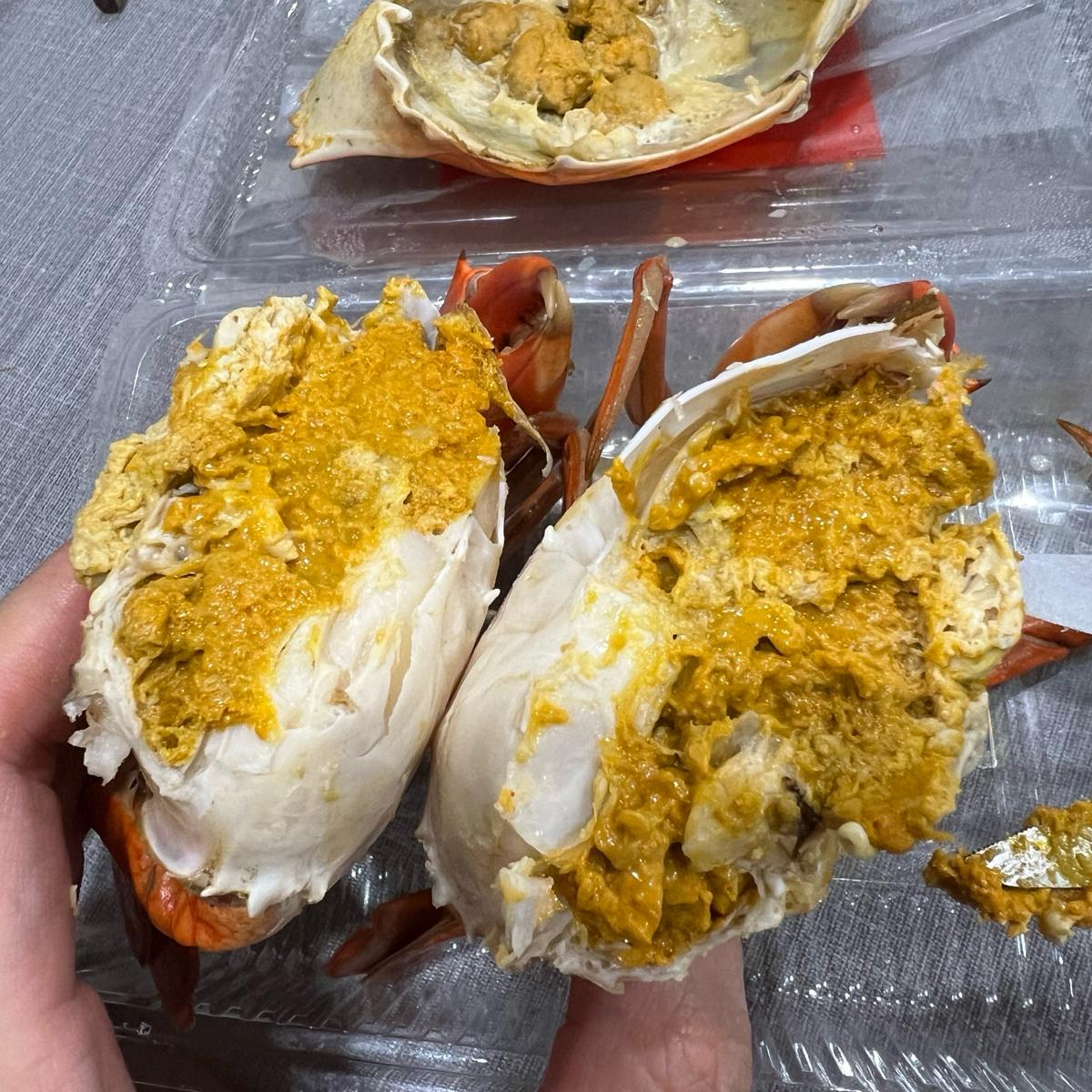 這次用1500元預算,老闆幫忙搭配了一隻頂級沙幼母蟹和一隻普通紅蟳。當我一開始看到這兩隻螃蟹時,頂級沙幼母的蟹膏看起來還算普通,反而紅蟳的蟹膏紅亮亮的,看起來更有吸引力。不過吃下去後立馬改觀,頂級的沙幼母蟹果然名不虛傳,蟹膏的甜味與鮮味豐富、濃郁,完全是不同層次的享受,果然價格反映了品質。而紅蟳雖然不錯,但和沙幼母比起來,味道明顯淡了些。