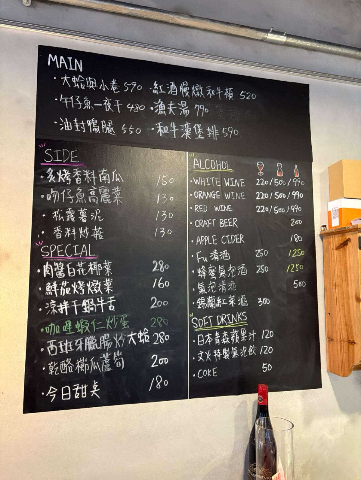 他的菜單都是寫在黑板上,要自己去看,有點小麻煩。整個用餐體驗跟味道都非常好,完全可以理解為什麼這麼難訂。餐點的心得就放在照片上啦,有機會下次還會想再訪。