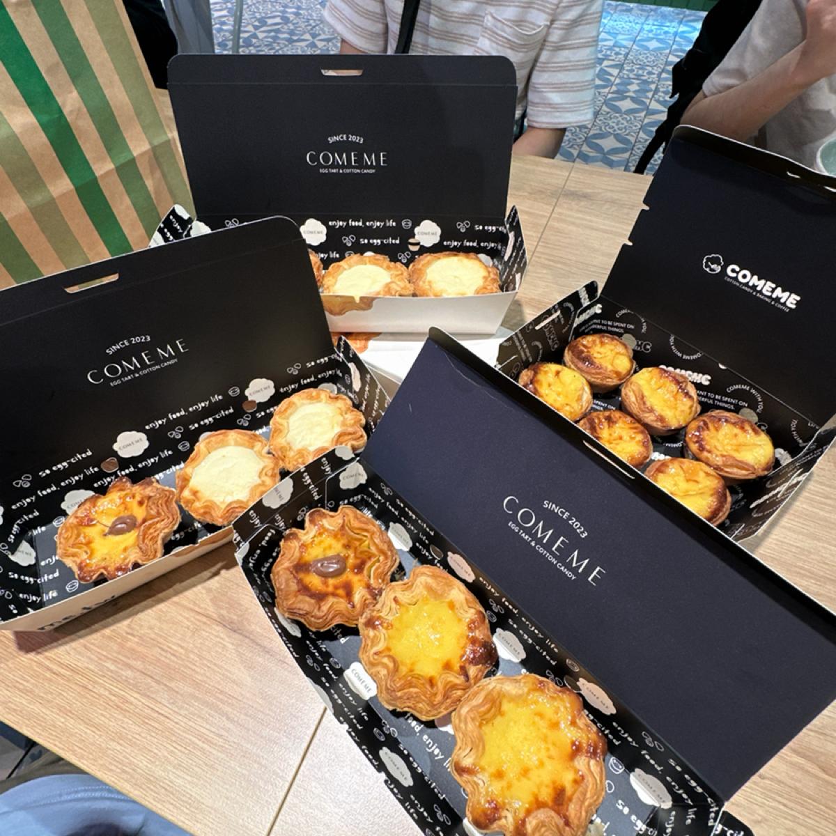 最近IG爆紅的美食,也是在香港熱賣的甜點「千層拿破崙蛋塔」,現在台灣也能免飛香港就能吃到了!其中一間來自於台中的店「COMEME」也在台北展店。而COMEME的起源要從一個小男孩的夢想說起,就是把夢中的甜點仙境帶到現實世界。COMEME的誕生始於製作棉花糖相關的夢幻甜點,包括獨特造型的巨大棉花糖、捲捲棉花冰等。隨著時間流逝,這位小男孩已長大成人父,為了實現自己孩子對蛋塔的渴望,他遊歷各地,不斷嘗試調整配方,最終做出了孩子口中的「最好吃的蛋塔」。於2024年,COMEME推出蛋塔系列,將這份美味分享給更多熱愛甜點的顧客…