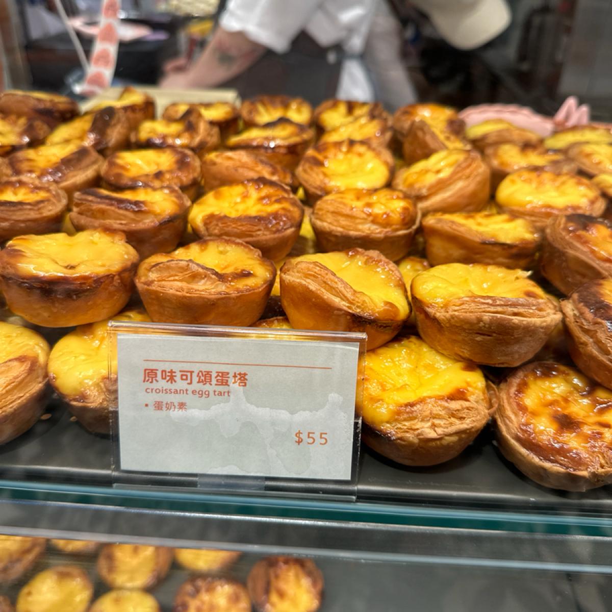 ✅原味可頌蛋塔:吃起來外皮酥脆,與一般傳統蛋塔不同的是,奶香味較濃郁、純香。不過負擔感較大,吃多了容易膩。