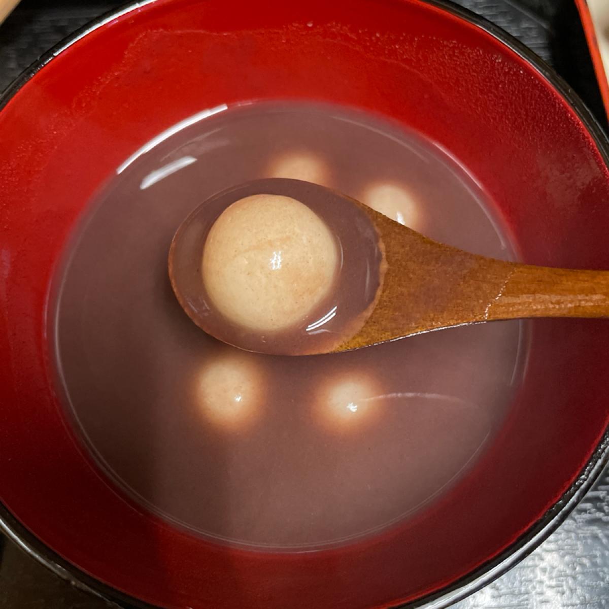 紅豆湯有滿滿的紅豆粒,紅豆粒都很飽滿大顆,不過我個人覺得紅豆湯實在蠻甜的,我需要時不時喝熱茶及旁邊附的醃製昆布解甜膩
