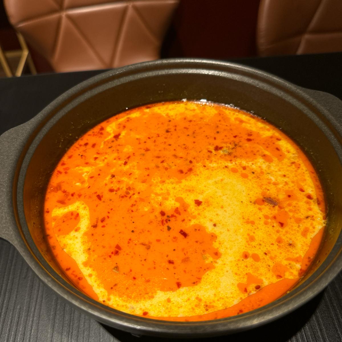 麻奶鍋很香很濃郁,以不吃辣的我來說算中辣(湯底都可以客製),蔬菜吸滿奶香味很過癮,搭配現切霜降牛真的一絕,牛肉很嫩很新鮮。