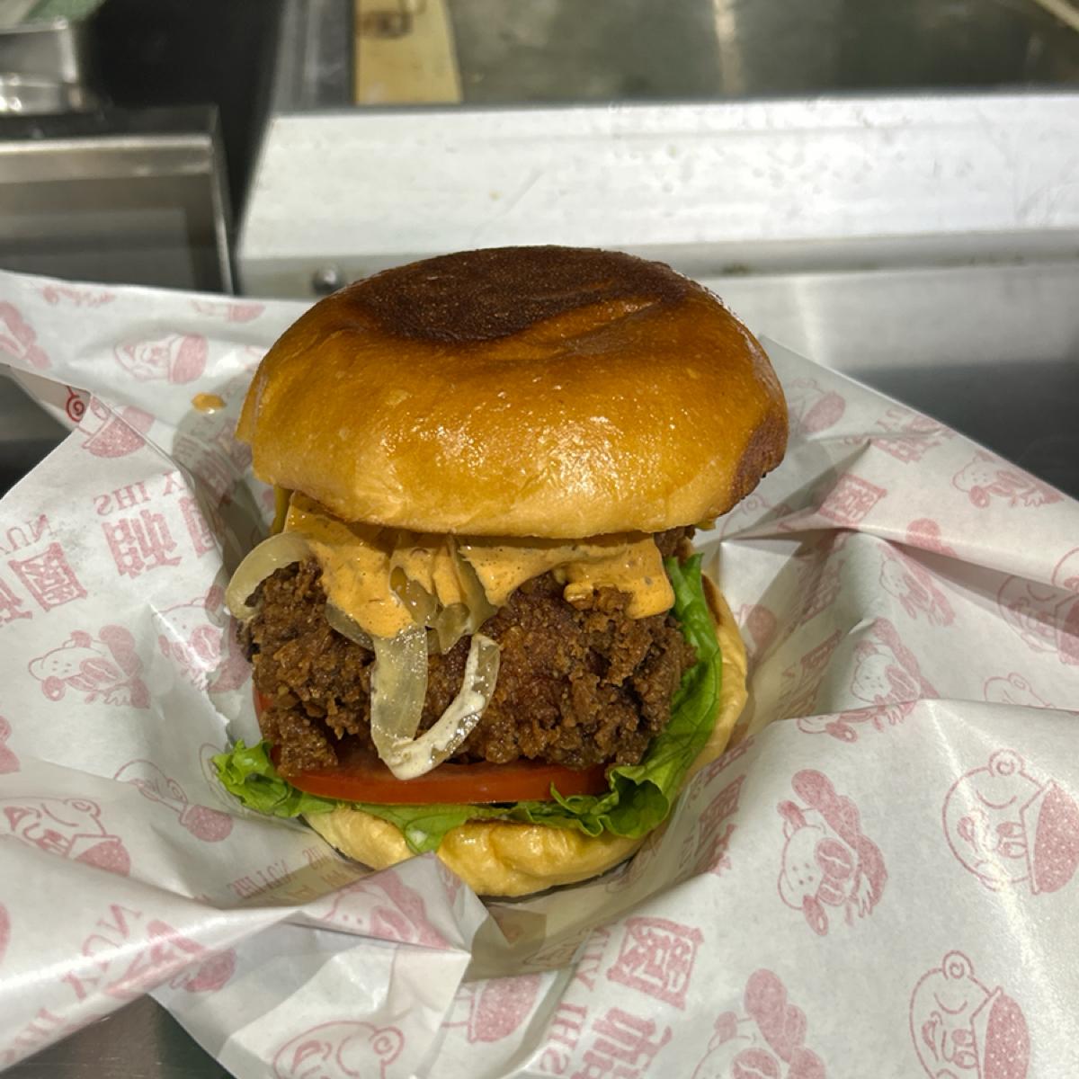 主廚炸雞堡:裡面有番茄、生菜、高麗菜絲,加上炸雞鮮嫩多汁,口感上很有層次,下次還會再點!