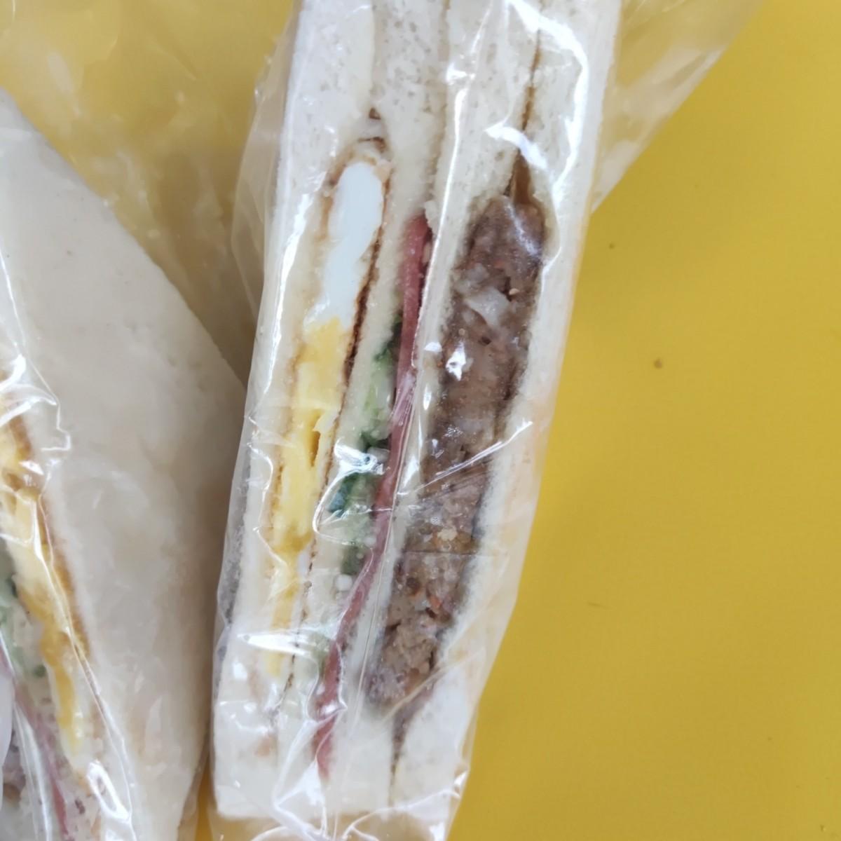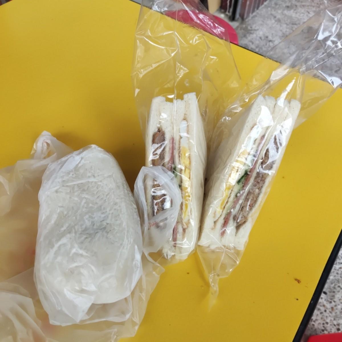 我買了總匯三明治和飯糰,應該要再買一套燒餅油條夾蛋的,但我的胃撐不下,所以忍痛放棄燒餅了。