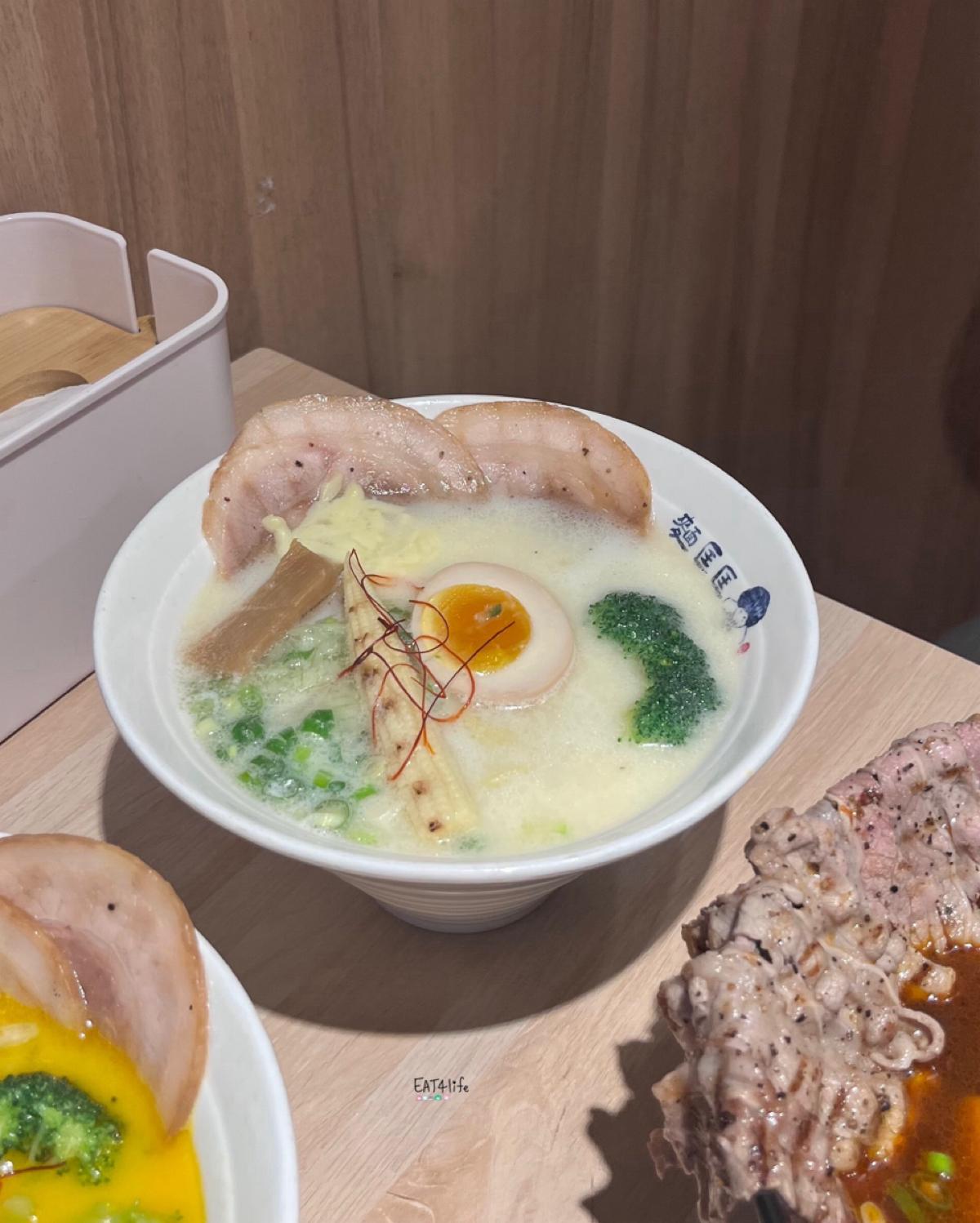這個口味的湯底是相對清淡的,一入口的奶味沒有很重,但是尾韻奶味會蠻突出的,因為有加起司條,所以會有一點點牽絲~但是不多!叉燒肉有兩片,肥瘦均勻,還有筍乾、和好好吃的糖心蛋!