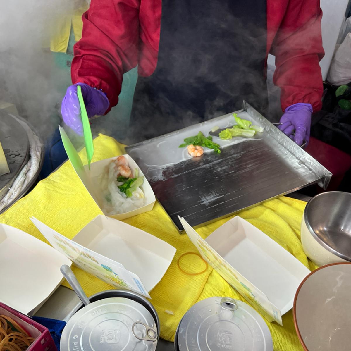 騎樓下的小吃,三間分店只有外帶,好像有隱藏版蔬菜的餐點,主打陝西肉夾饃跟腸粉,肉夾饃是老闆娘自己做的餅皮,現點現煎需要一些時間,豬肉洋蔥孜然口味,口感口味還行。腸粉口味很多,鮮蝦蛋腸粉現點現蒸出餐很快,口味可以大鮮蝦四尾,蛋跟菜感覺相對少,整體不錯吃,自製辣椒有辣哦。