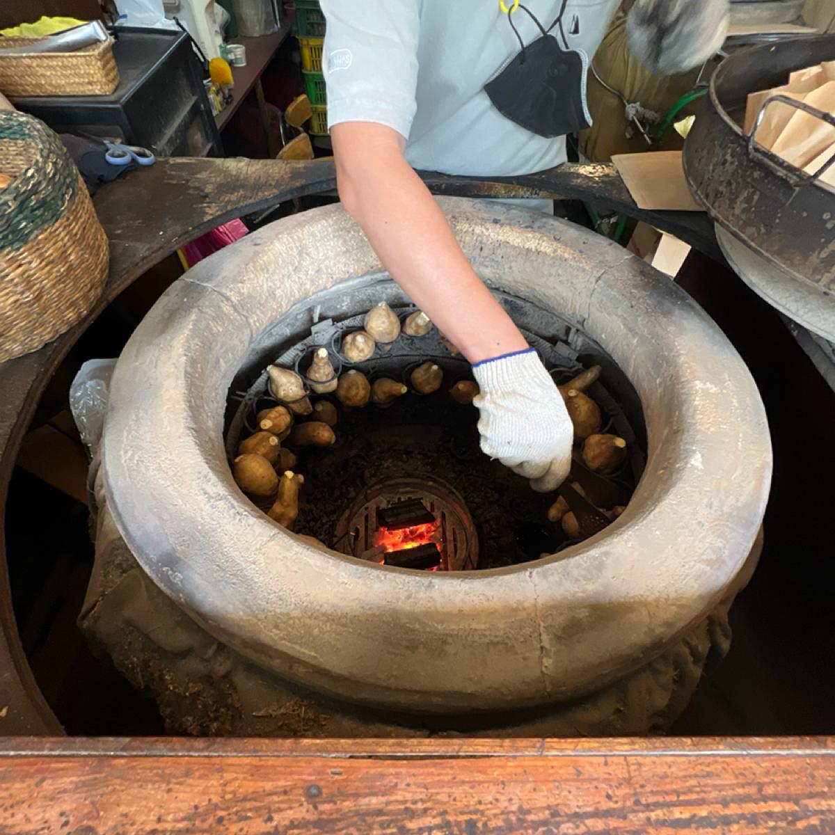 有地瓜牛奶、冰地瓜跟烤地瓜,吃喝冷熱都有的地瓜專門店,烤地瓜不會很大,在壅裡炭烤悶煮,傳統做法拍一拍炭灰就可以直接連皮吃,甜度很夠口感偏鬆軟,好吃。