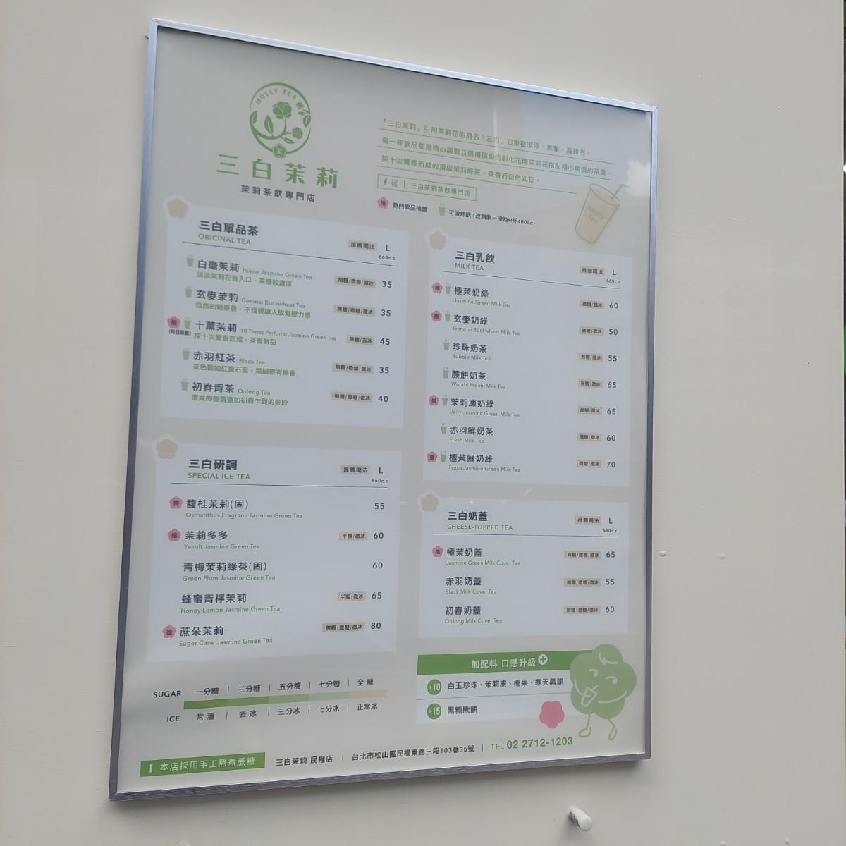 三白茉莉茶飲專門店位於復興北路地下道旁的小巷弄中。