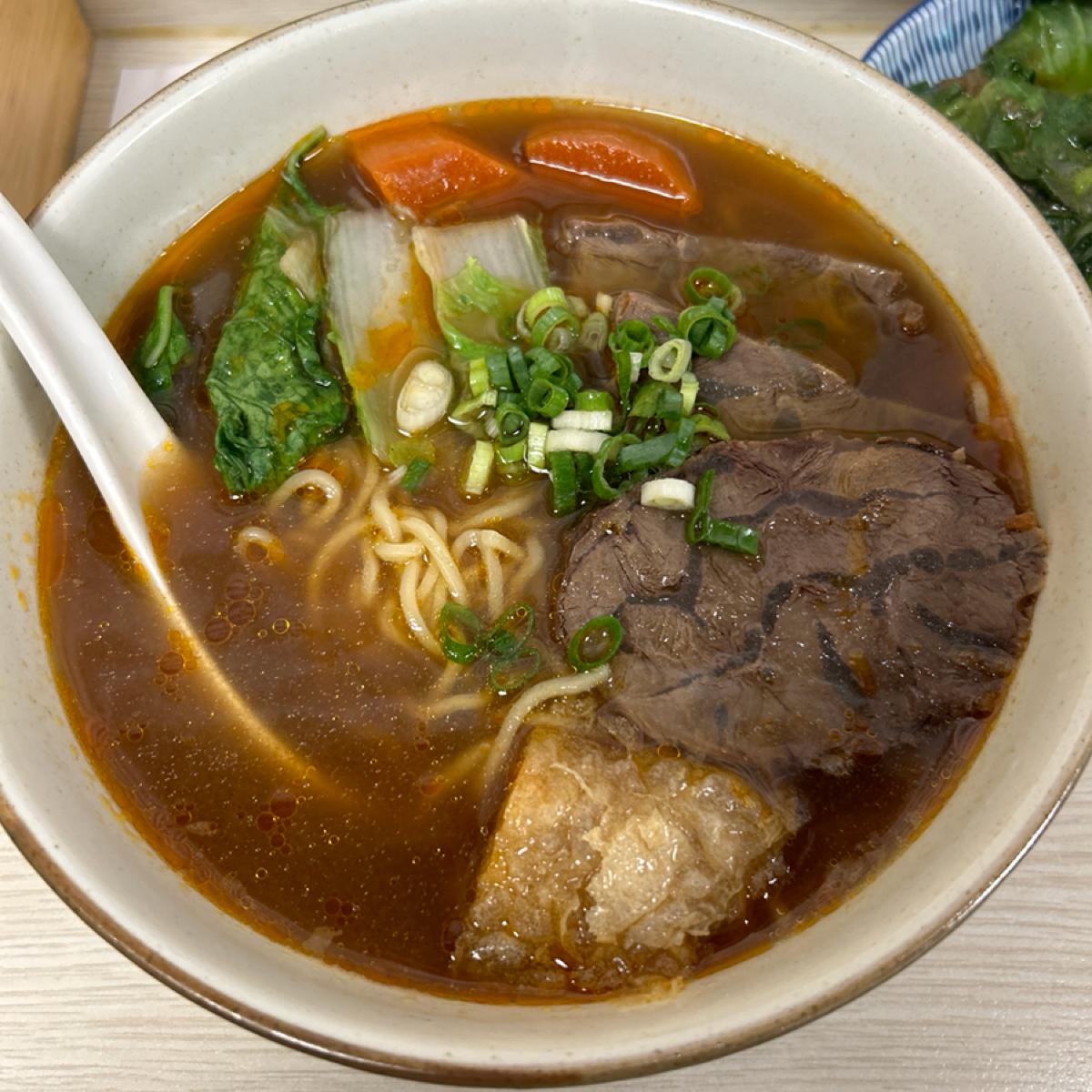 這間牛肉麵店是2023台北國際牛肉麵節的金牌得主,來吃過四次,算是很好吃的牛肉麵。他的滷味也有很多選擇,過去幾次曾吃過麻辣豆腐跟黃金泡菜等東西,今天是點了滷白蘿蔔跟花干,也都覺得蠻美味的。它的缺點可能是店內的位置很擠,完全無法很舒適的吃,然後有時侯人多也要排隊。以主食來說他的牛肉麵是算很好吃的,價格也不算便宜就是。