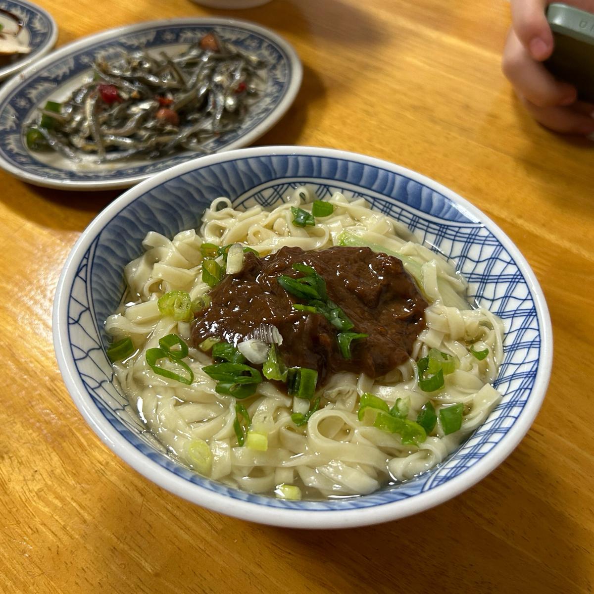 炸醬麵是有點像陽春麵的扁白麵