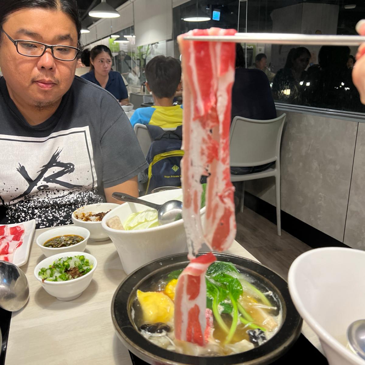 剛開幕的時候有來過一次,今天特地來吃是因為要外帶樓下那間麻辣臭豆腐給同事吃,來的時候先點預約單,發現可以用app預約,今天點肉多多,還加點肉跟甘貝吃的很過癮,他的調味料也是自己調,很喜歡先加沙茶醬+蒜泥+蘿蔔泥+蔥多+辣椒+醬油沾肉超級好吃,結帳時有把去王品吃的瘋點數扣掉省了一些錢,整體吃下來,快速、便利、喜歡在店裏享用。