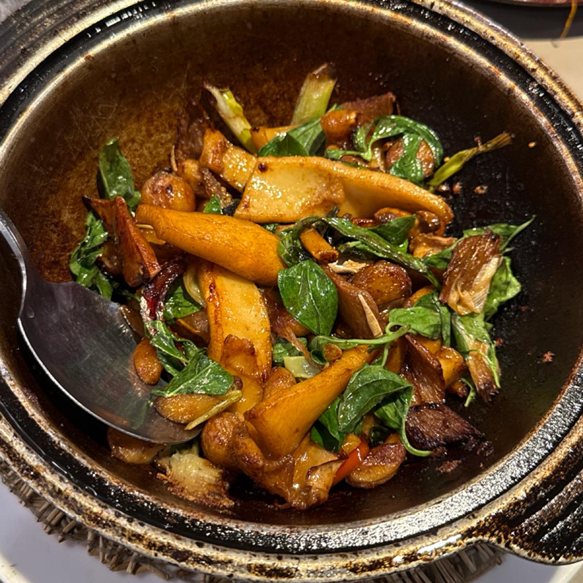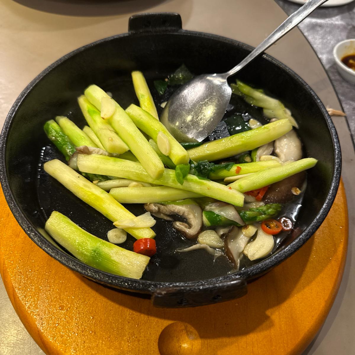 蔬菜類中,蘆筍 表現普通,熟度正常但缺乏亮點;高麗菜 則炒得清甜爽口,是平衡海鮮油脂的重要配角。
