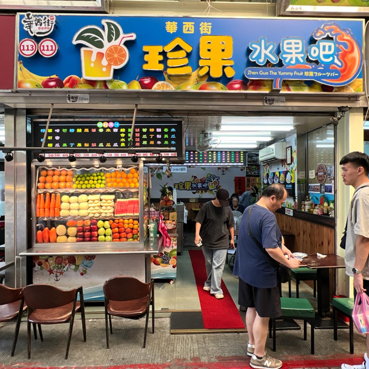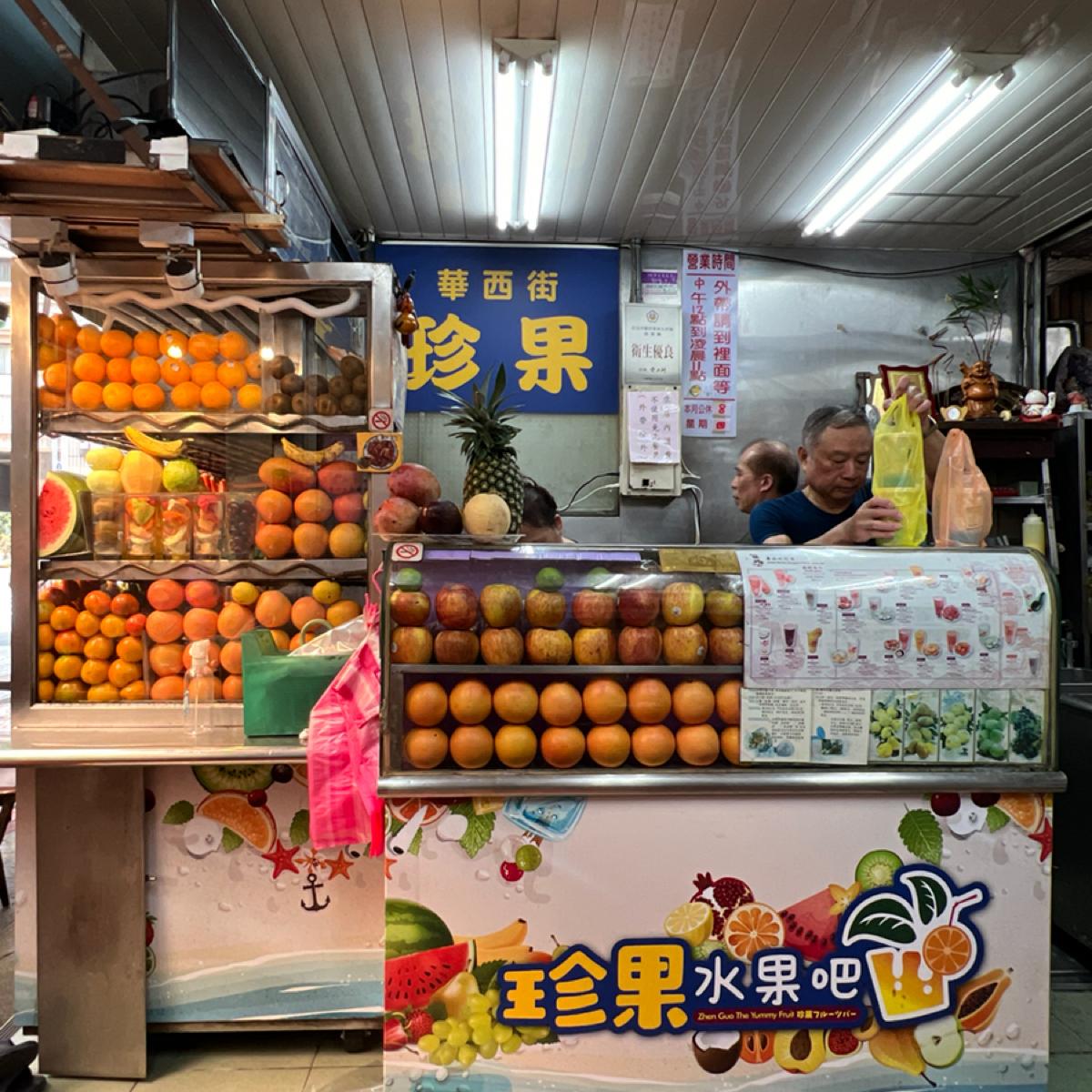 店外就看得到透明冰櫃裡面的排得非常整齊的水果非常好認,店內販售有水果盤、各類冰品、和現打果汁,算是華西街相當知名的老店。