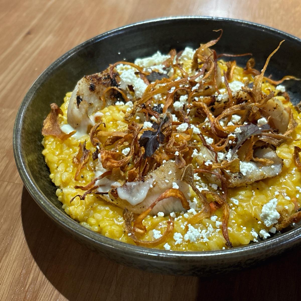 因為是來吃午餐的,我點的南瓜燉飯米心偏硬,很讚!口味的層次豐富,可以吃到費塔起司的香氣、以及炸得酥脆的菇菇,還有松阪豬彈口有嚼勁,非常搭。是很美味的燉飯~