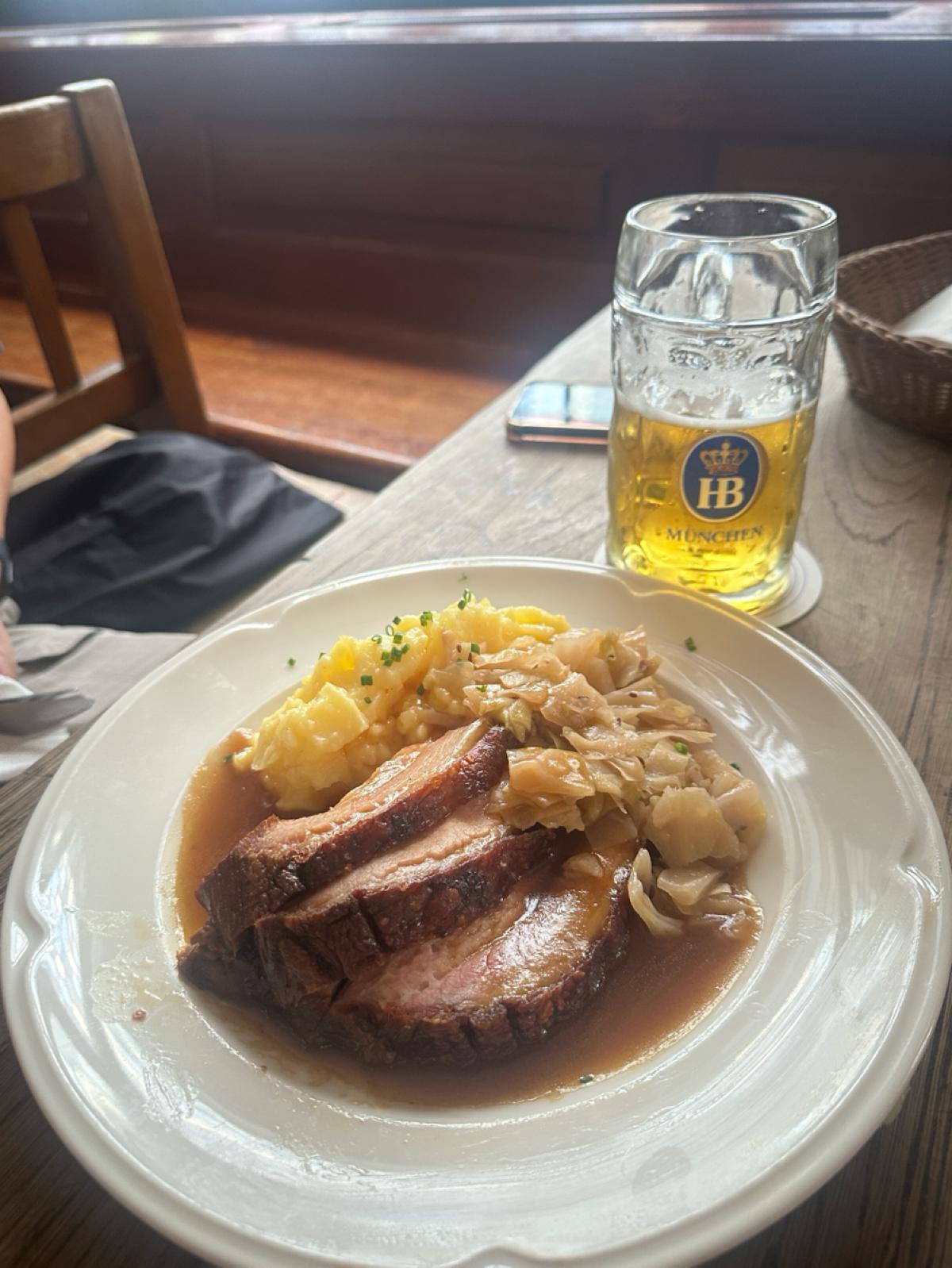這家餐廳在慕尼黑應該是遠近馳名的,如果來到慕尼黑沒有品嚐這邊的豬腳也一定會來喝一杯啤酒,畢竟這家的啤酒🍻在這家餐廳可是他們的發源地!裡面的位置非常的多,大部分進來的時間都可以找到空位坐下,坐下之後自然會有服務生在他們服務的區域來為你點餐!