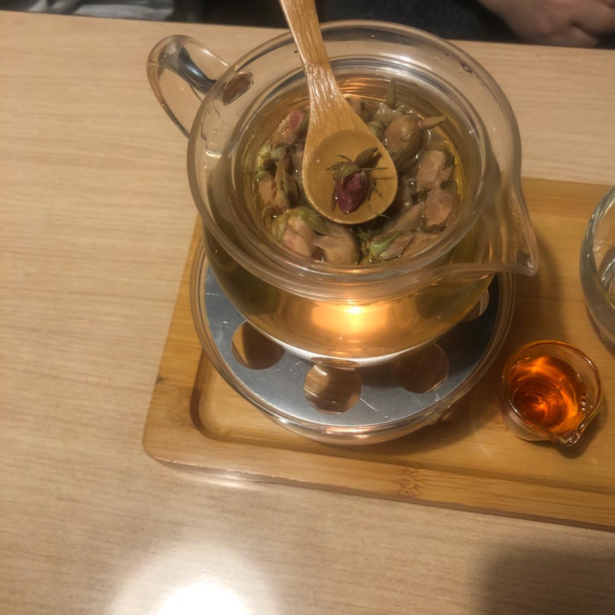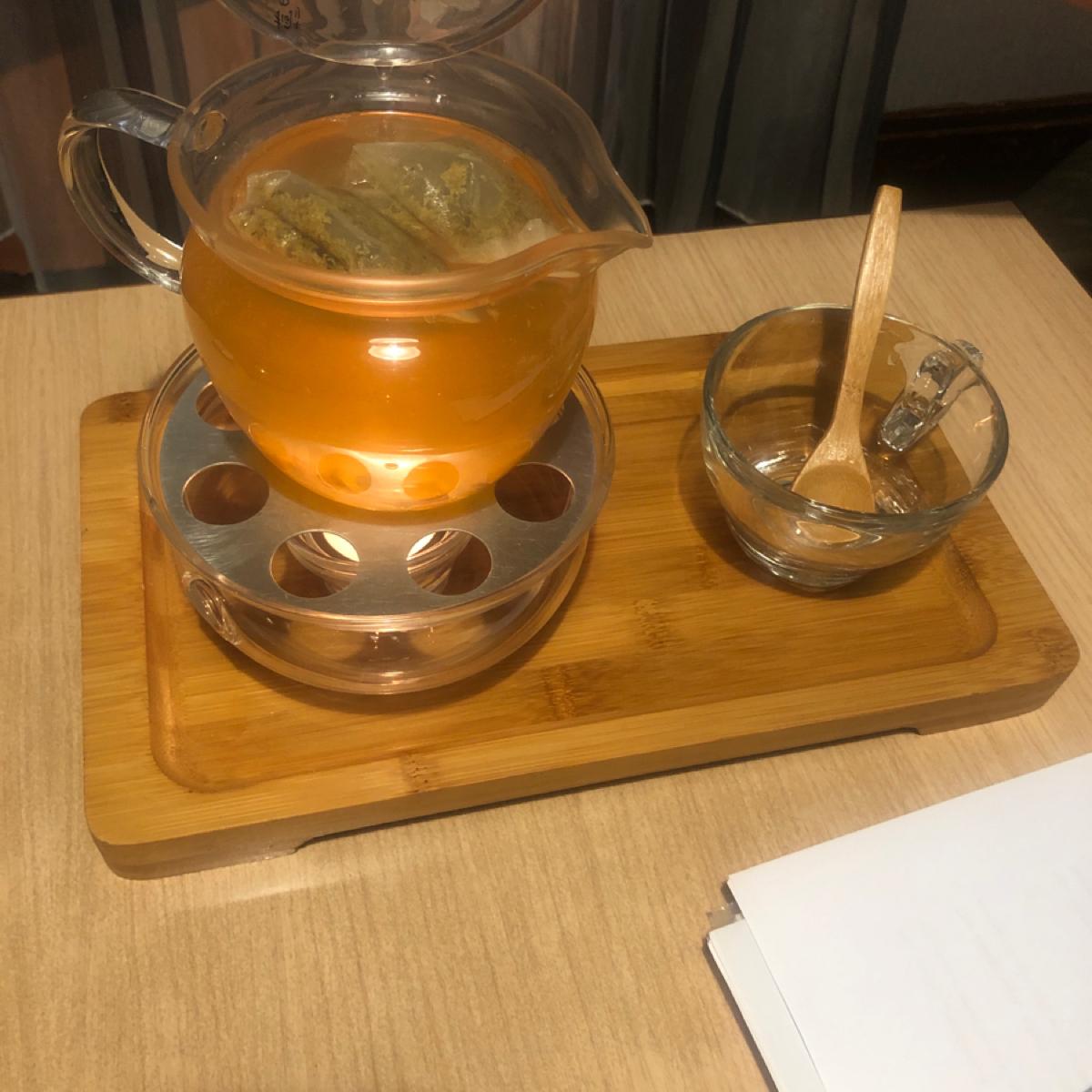 跟學姊一起討論事情,所以意外被引薦了一間有小包廂的茶餐廳。 大家個別點了可以回沖的熱茶,分別是薰衣草茶、陳皮桂花、玫瑰跟柑橘西柚茶。陳皮桂花跟西柚茶因為各別用料都有甘甜味,所以沒有另外附糖漿,陳皮桂花喝起來香氣撲鼻甜味剛好,但二沖就比較淡;薰衣草跟玫瑰茶則附上糖漿給個人斟酌,單喝無糖的薰衣草茶偏苦,加一點比較滑順。 另外小點心真的是吃到我停不下來,甜不辣、鹹酥雞從熱吃到冷都很好吃,特別是雞蛋豆腐,吃的時候真的很香,推一個!(但要小心不要被燙到。)