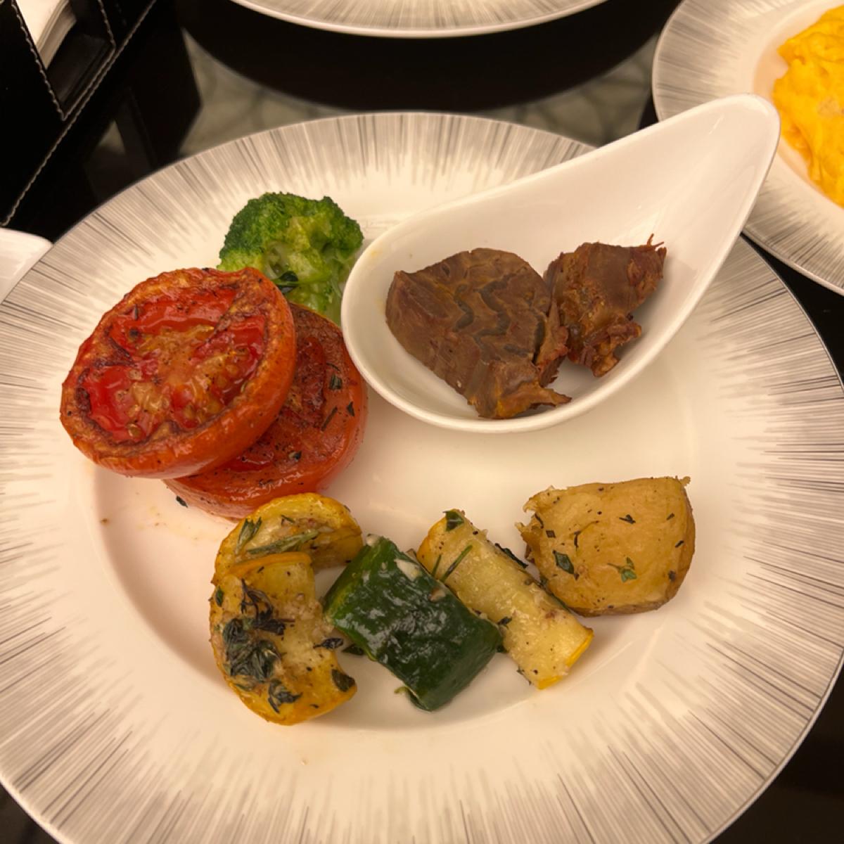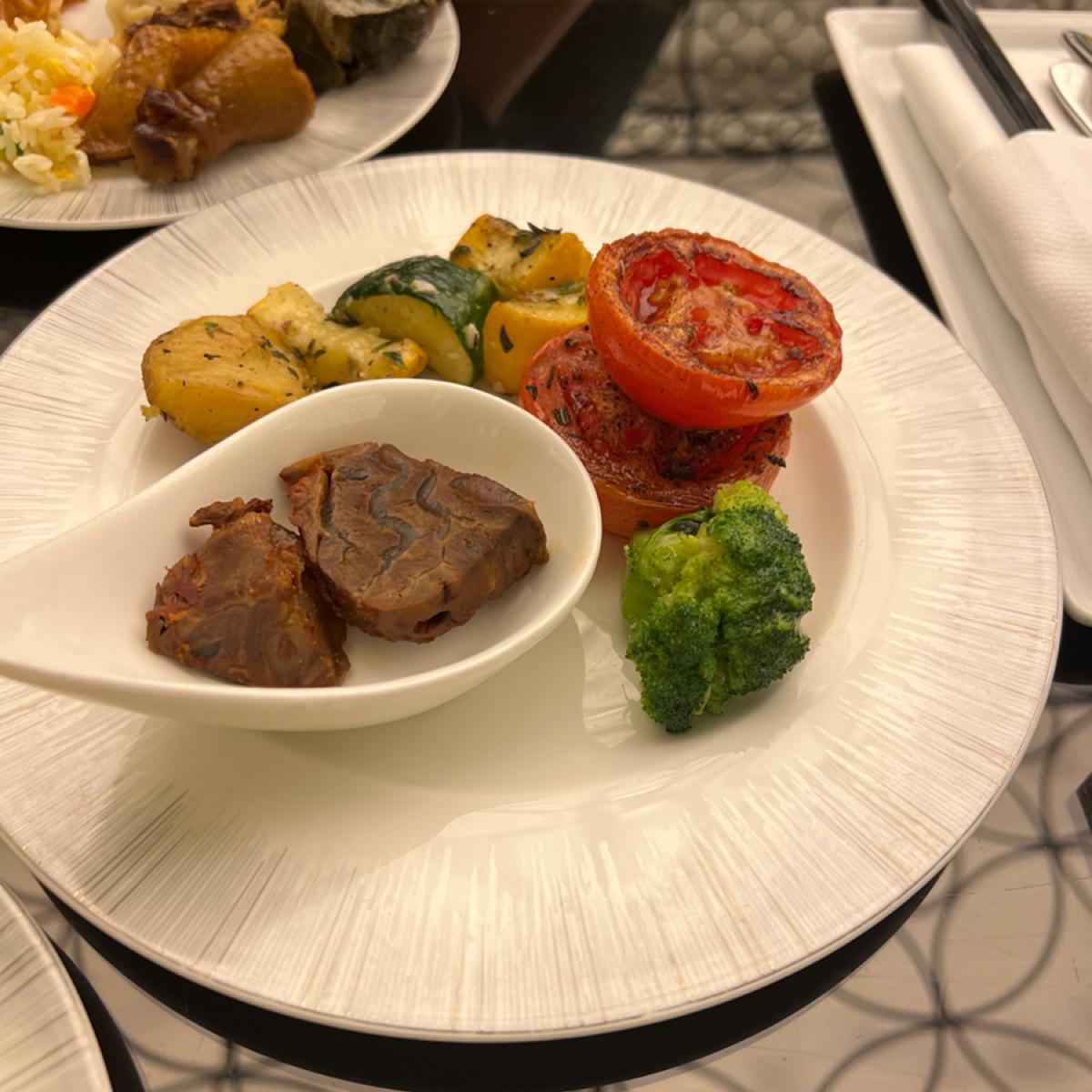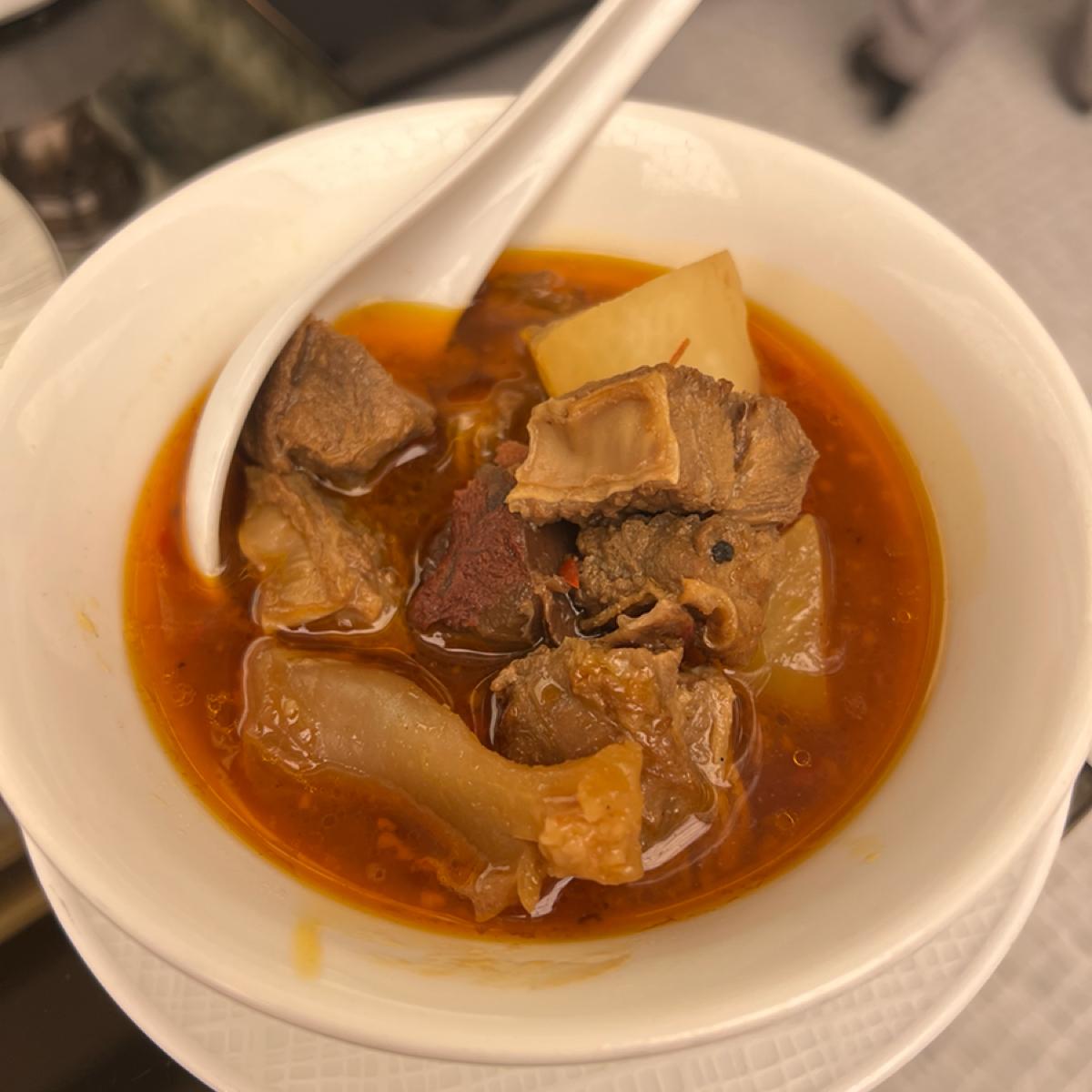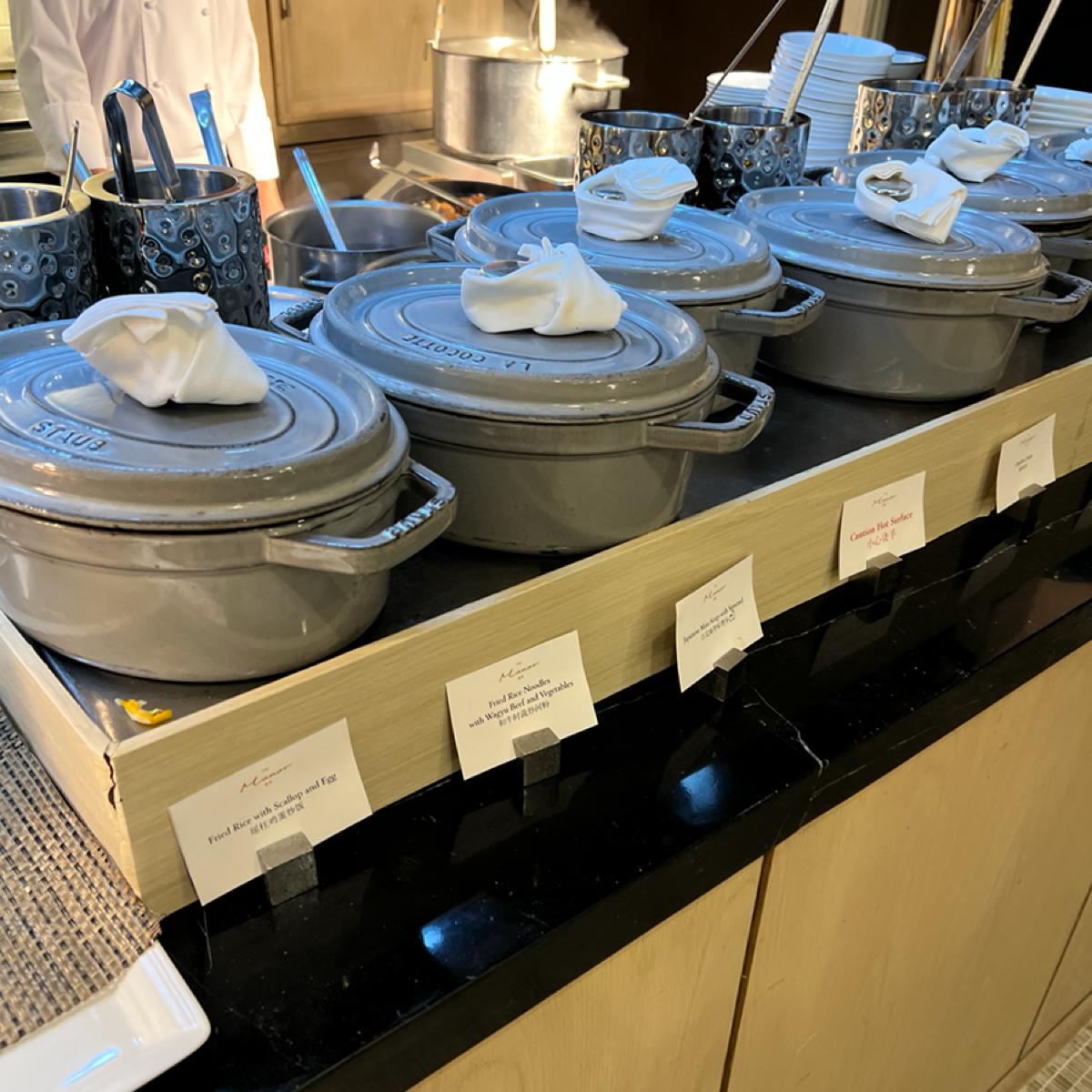 🔹現煮的料理有鮮蝦豬肉雲吞麵跟牛腩湯麵,我們點了一碗牛腩湯麵,湯頭清淡,牛肉蠻多的,吃起來也很嫩,對於吃到飽早餐我覺得還不錯。