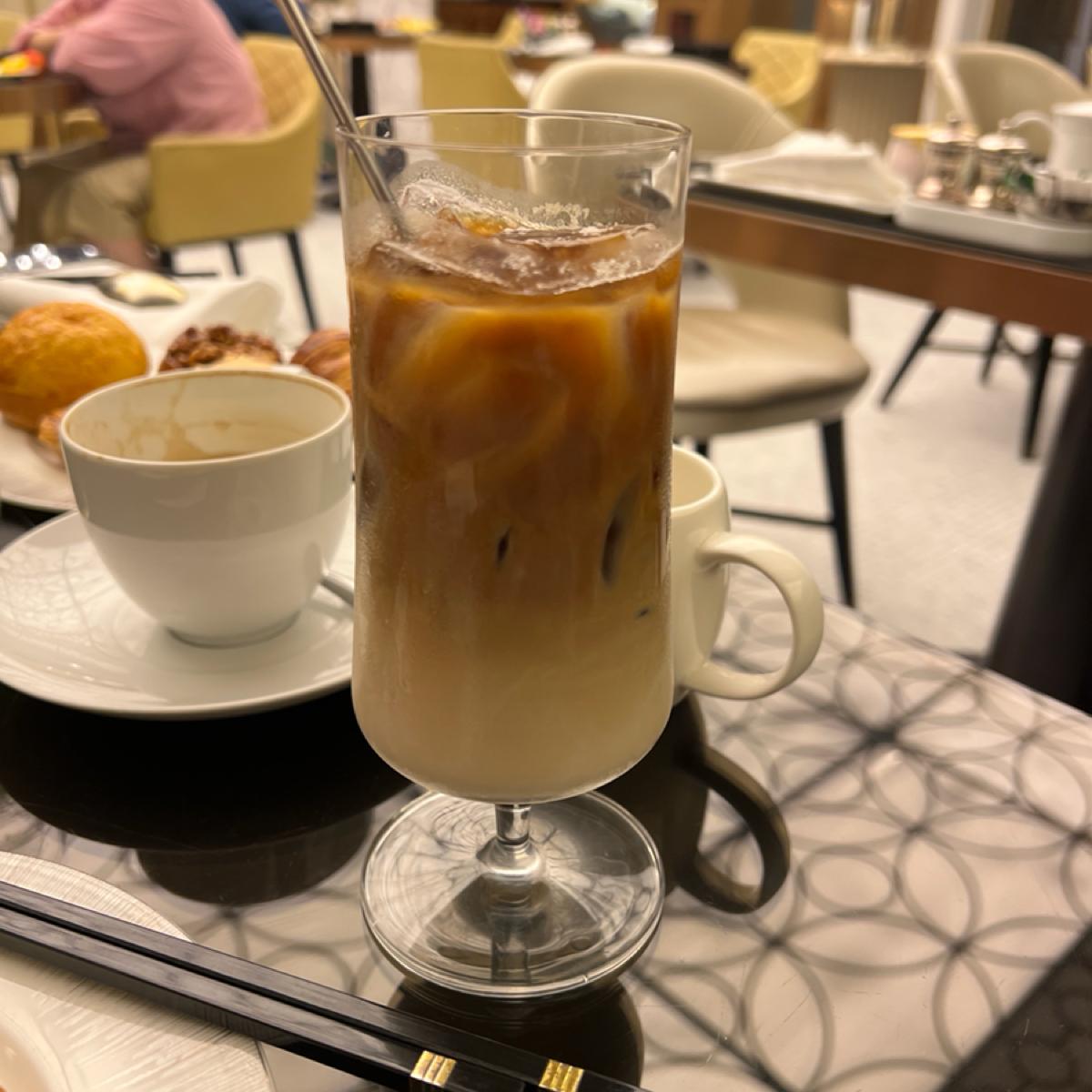 訂房付的早餐,先給房卡登記後就會被帶入座,服務員會上前問要喝什麼,
