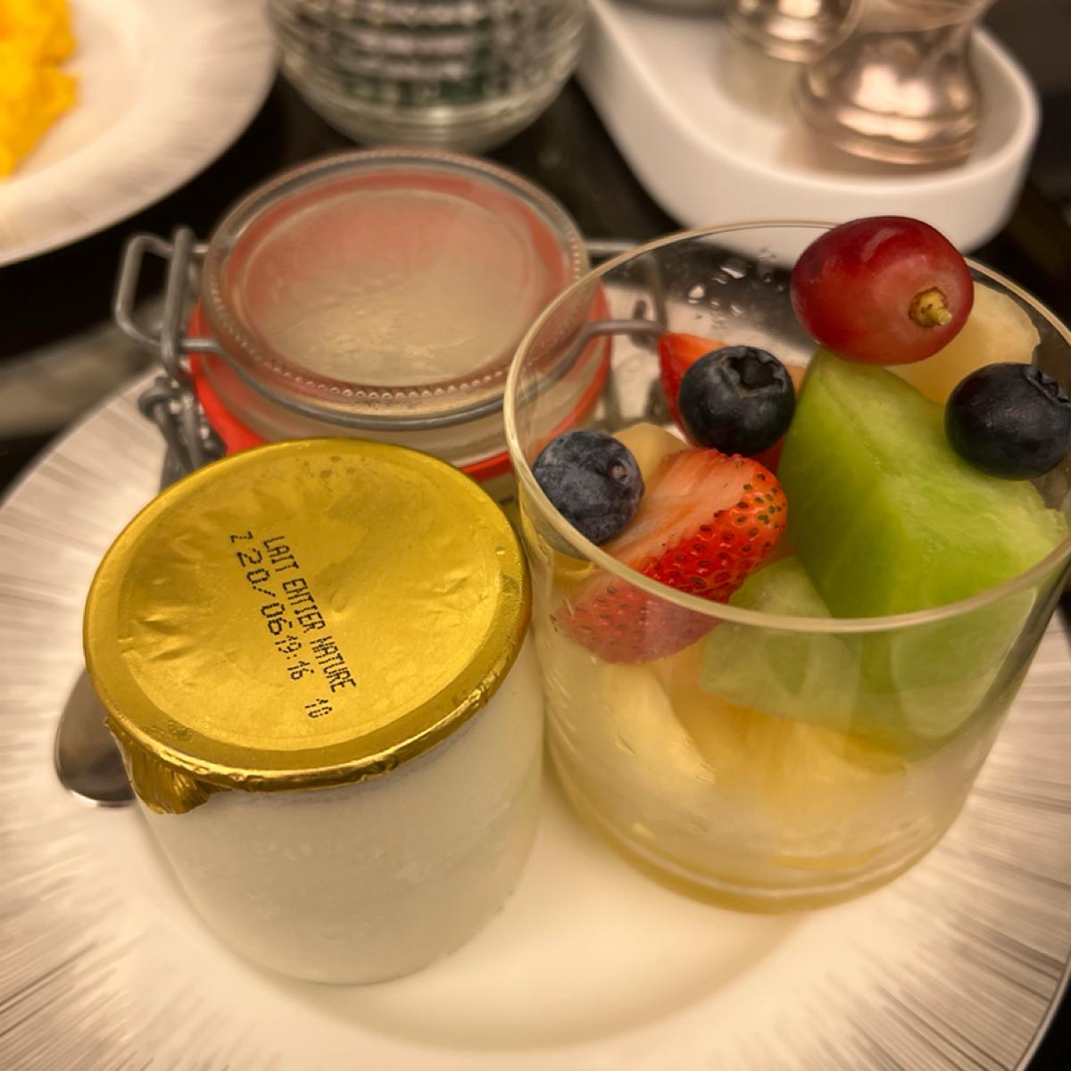 🧸優格杯裡面的水果蠻甜的,原本想單拿水果吃,但當天現場有一群印度團客圍住水果區,有人直接徒手抓水果…我就不敢拿了。