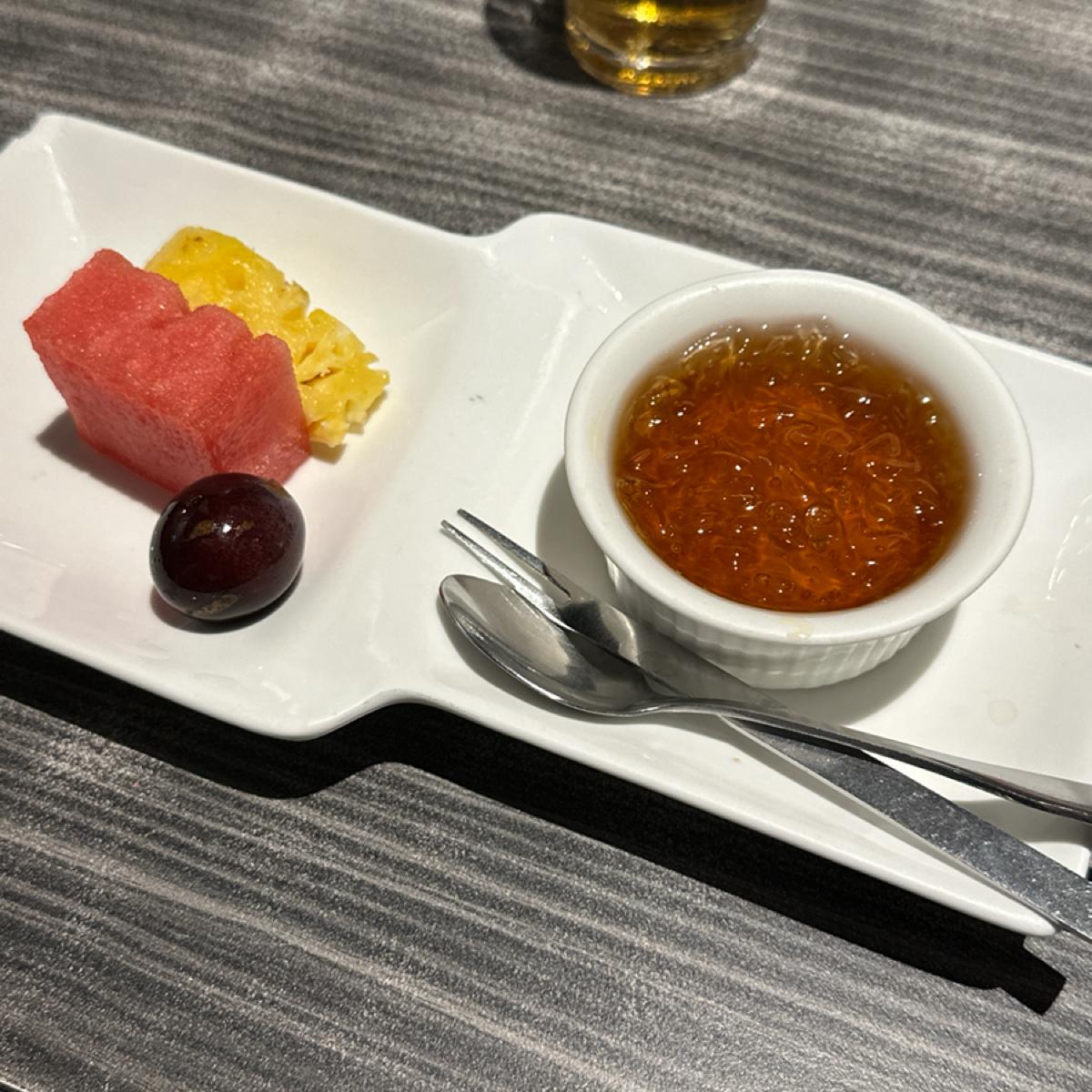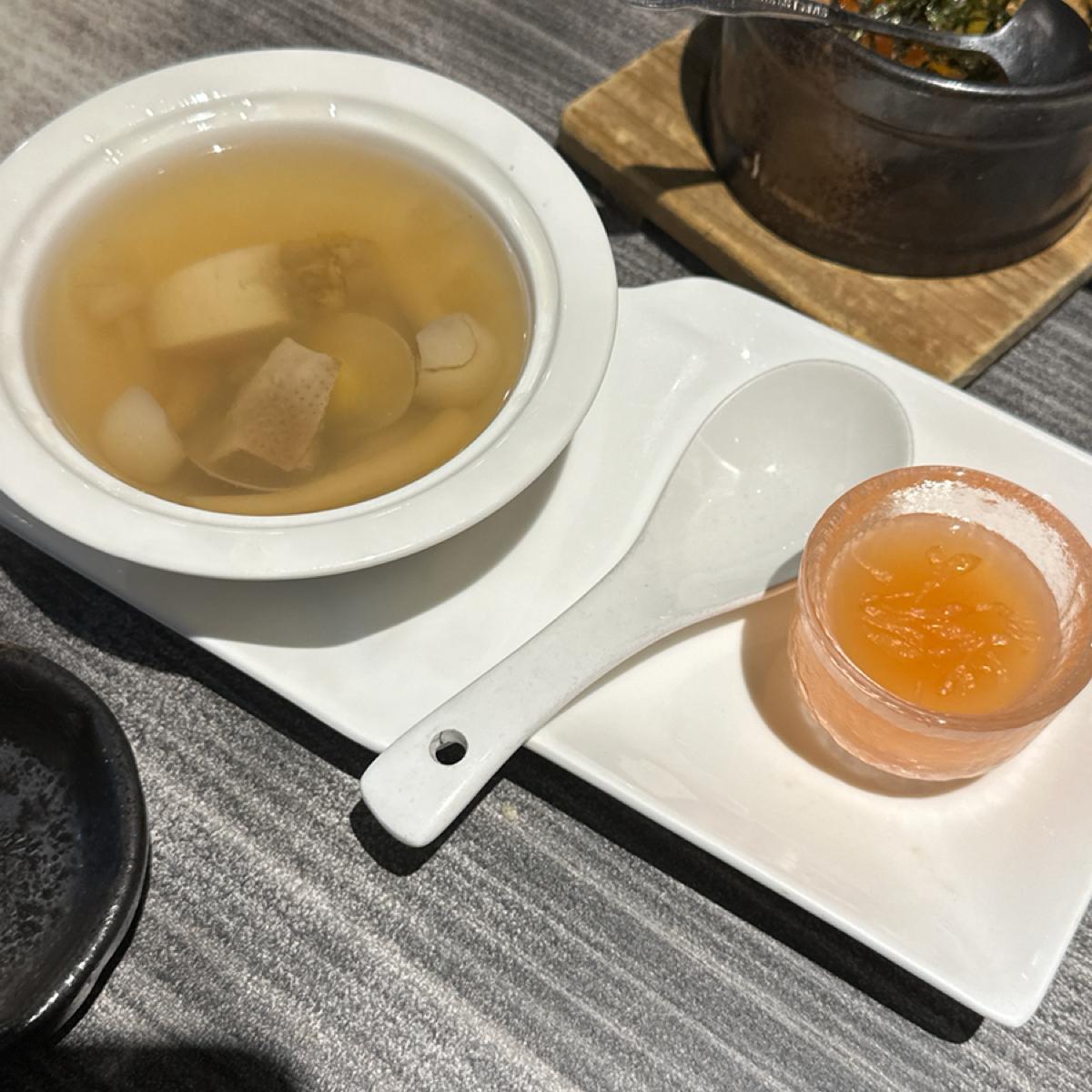 其中,烏龍茶雞湯跟柚子干貝盅算是較特別的湯品,前者味道帶有茶香,偏清爽的湯;後者則雖帶有柚子味,但湯頭偏濃郁,故餐廳還備有葡萄柚汁,就是為了解膩用。