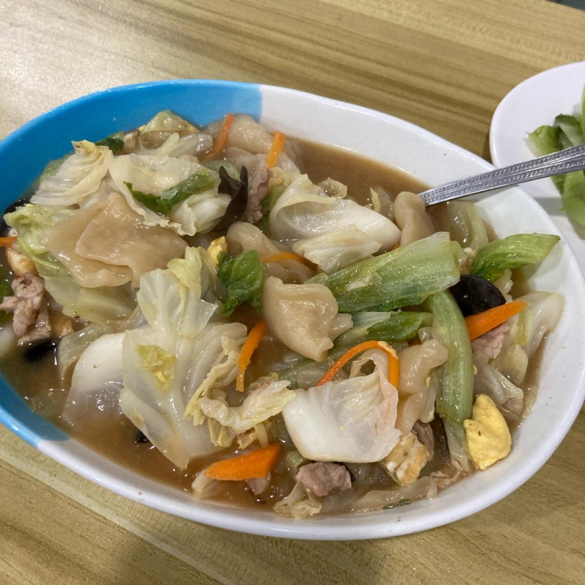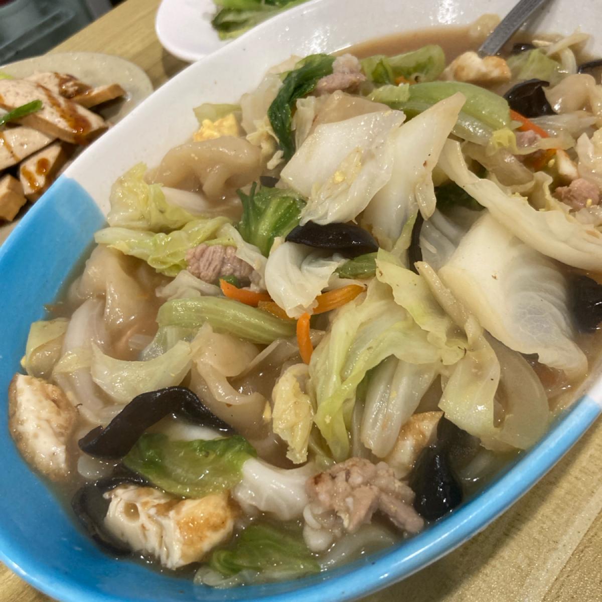 主餐點了木須麵疙瘩豬肉,有告知麵少,老闆很貼心的增加菜量,所以份量還是很多,吃很飽,感覺有加一些醋,很開胃好吃,連麵疙瘩的湯汁我都拿起來喝看看,不會太鹹而且是好喝的。麵疙瘩是薄的,所以有點嚼勁但又不會很沒味道。