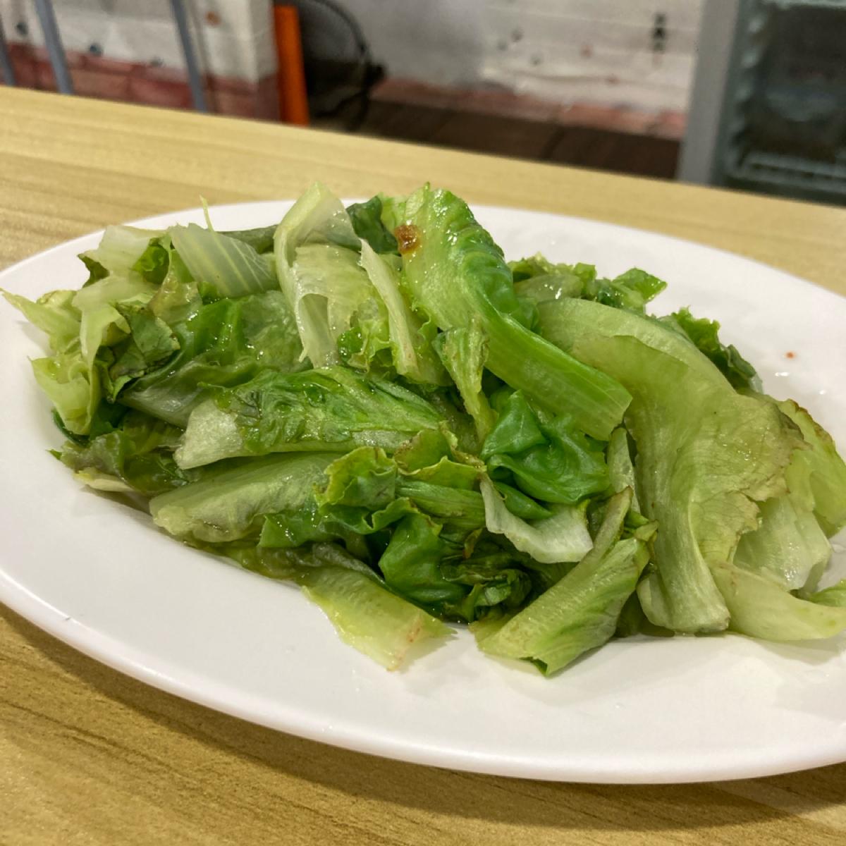 點燙青菜可以問店家有什麼菜,這次是高麗菜和大陸妹,我選便當店較沒有的大陸妹,而且告知不加醬油膏只加油,很清淡,剛好配豆乾。