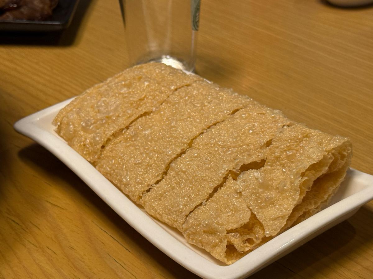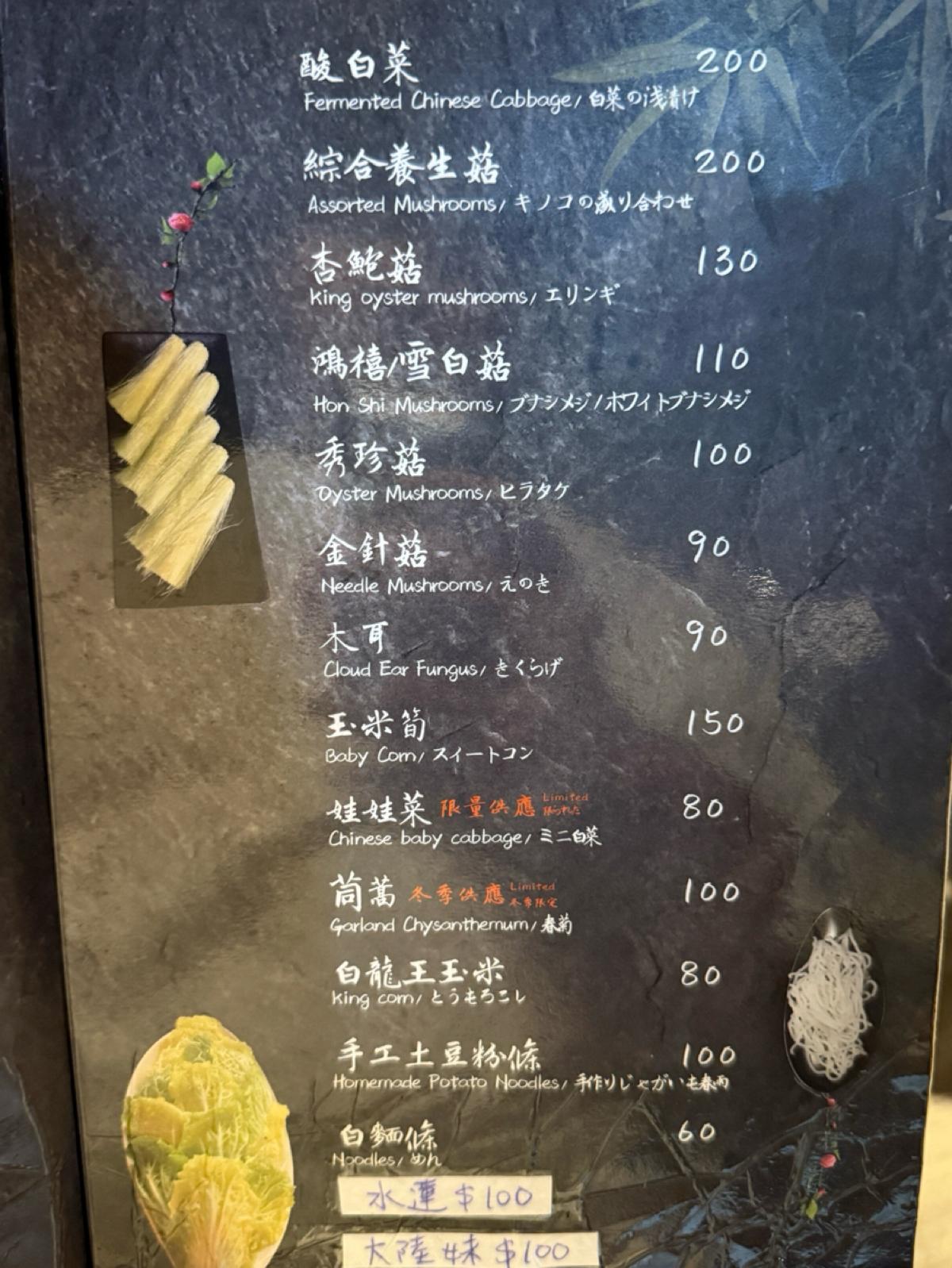 豆皮必點,很搭酸菜白肉鍋。娃娃菜也也很解膩。干貝丸很驚艷。