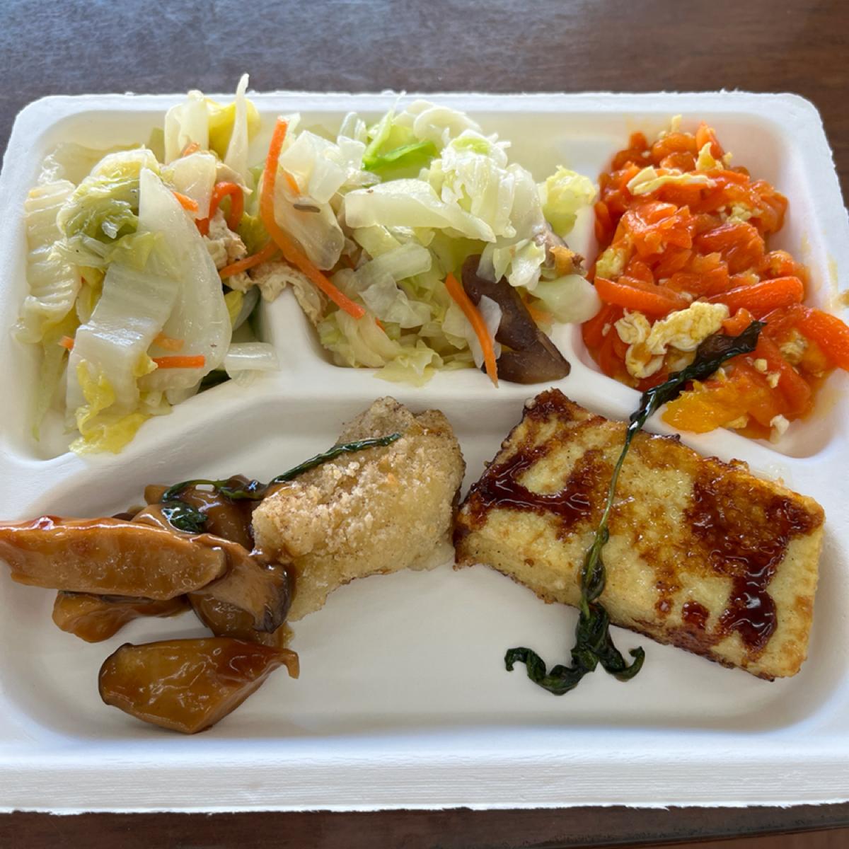 因為我個人並不喜歡吃有宗教素味道的店家,所以如果要吃素食絕對會避開,但是我從來沒有想過素食可以做的那麼好吃!!!先講他們家的飯,以自助餐的水準真的是好吃到哭腰,粒粒分明,而且在有煮透的情況下,就算泡到了湯汁醬汁,都還是可以保有米粒的Q彈感,how come?我還特地去問了在店裡幫忙的妹妹,但一切好像都很自然,就是煮飯而已🤣 不過米的品種應該是有特別挑過。