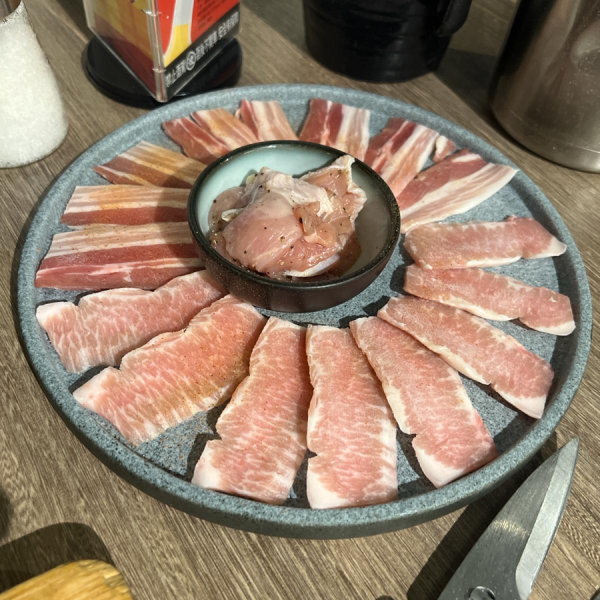 豬五花肉、松阪豬肉、櫻桃鴨胸(鴨胸還蠻厚的不是薄薄的那種)、還有另一盤五花加松阪