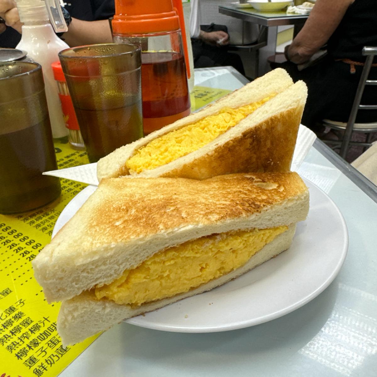 雞蛋被炒的軟嫩綿密, 沒有什麼多餘的調味或配料, 吐司烘烤過後酥脆, 配上嫩蛋綿密的口感, 單純的味道是每桌必會出現的一道餐點, 很推