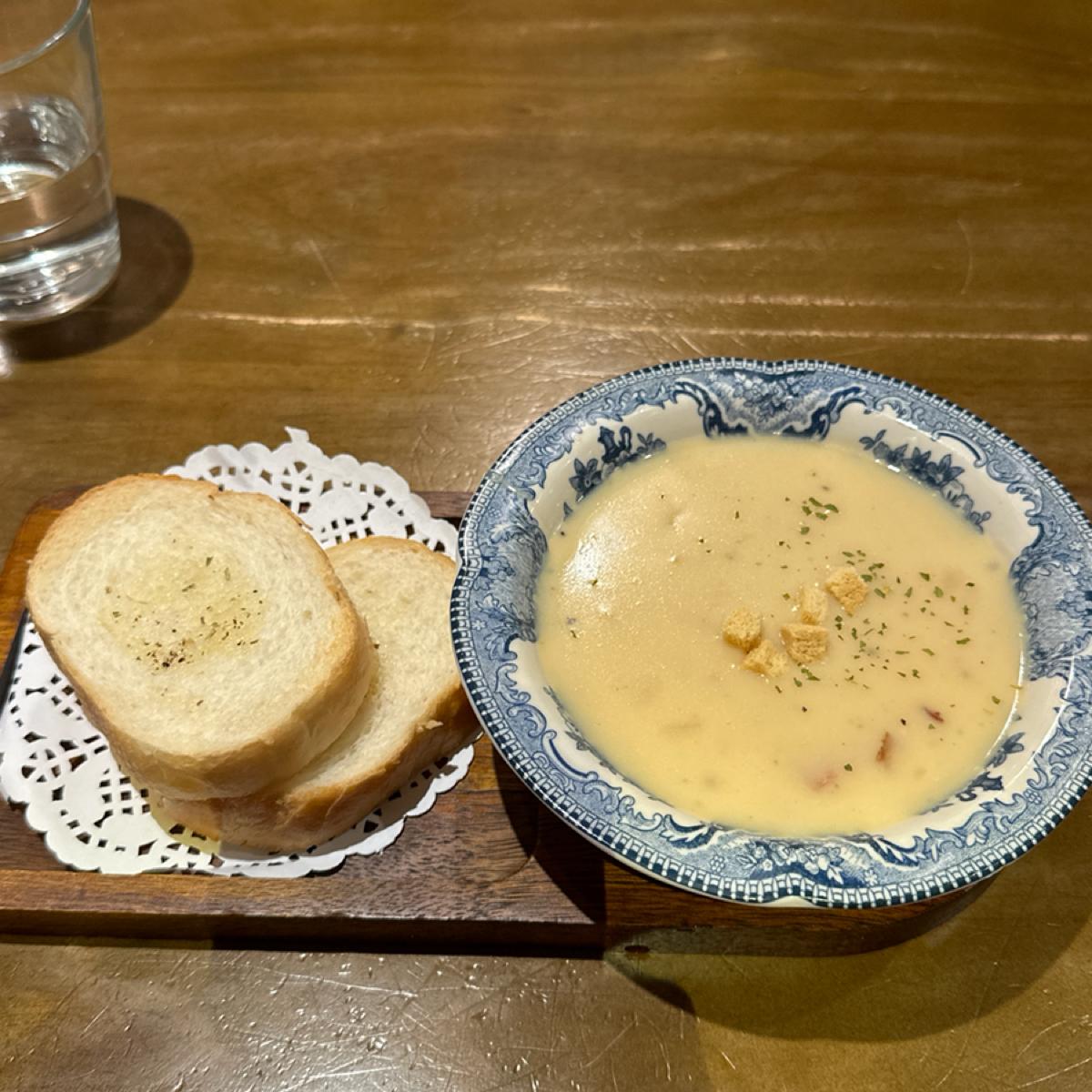 麵包為一般餐前吐司,濃湯為玉米濃湯濃郁香甜還不錯