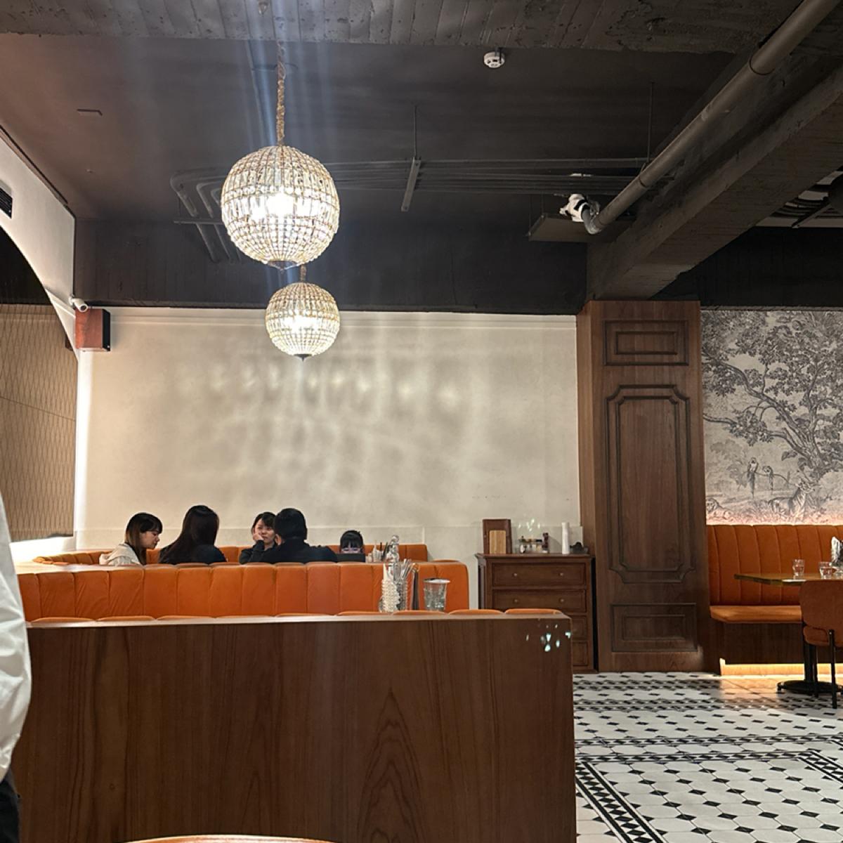 店內裝潢,從地板、桌椅,牆壁,整體都是帶有典雅復古的歐洲氣息,真的有一種身處在某種高級餐廳的氛圍感,開始懷疑自已是不是穿得太隨便了點