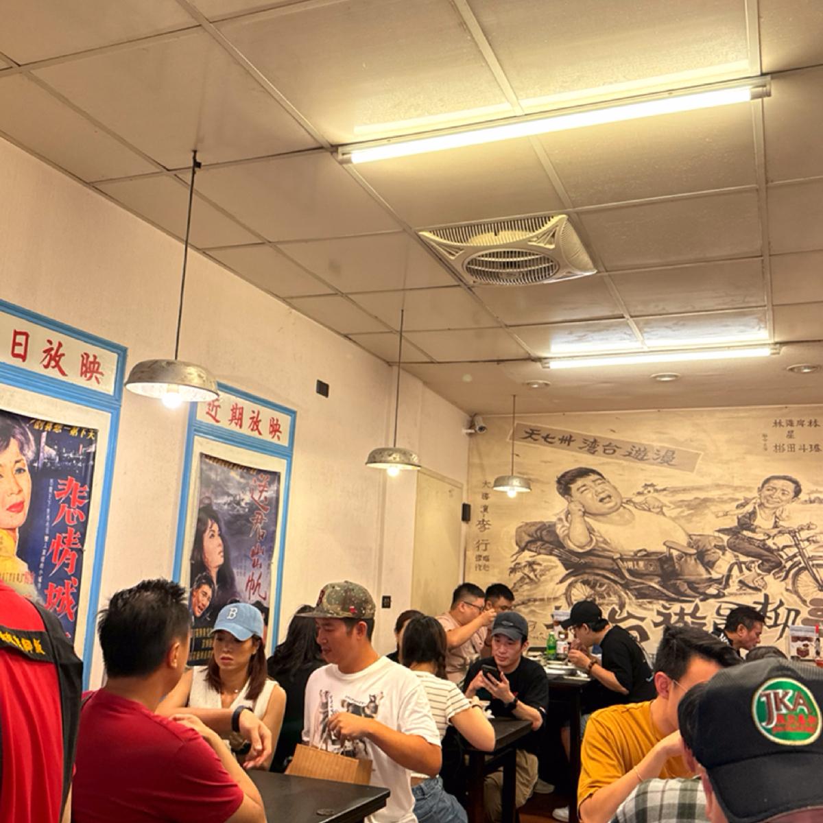 店內中華復古風,空間小且擁擠,可能需相席。廚房在另一店,僅有桌椅,繁忙時稍顯狹窄和吵雜。