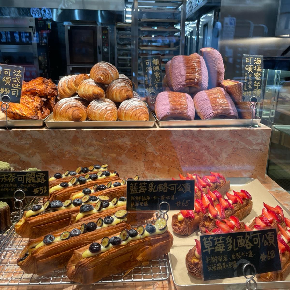 這家可頌店提供多種口味的可頌,如金萱青茶生乳可頌和法式吐司可頌,口味豐富,茶香與鹹味表現都很出色。